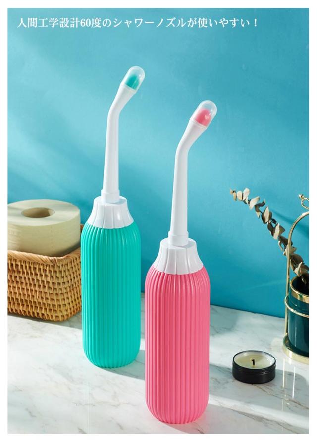 | 手軽におしりが洗える携帯用のです。 電源不要のシンプルな手動式で水圧の強弱も自由に調整。 サイド・ストレート2種類のヘッドが付属します。 人間工学設計60度のシャワーノズルが使いやすい! 防塵のキャップが付き、介護時の洗浄用具としても使用可能です。 先端のノズルは伸縮可能で、外出先でも使えます。 ノズル部分とボトルの2つの部品は取り外し可能、メンテナンスも簡単。 | |
