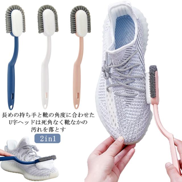 靴洗い ブラシ シューズブラシ スニーカー ブラシ 柄付き 2in1 靴用ブラシ シューズクリーナー 子供靴 靴汚れ落とし 靴洗い くつ洗い くつ洗濯 洗濯用品 多機能 お風呂掃除 床溝 洗面台 掃除ブラシ 清掃用品 新生活 引っ越し祝い 送料無料