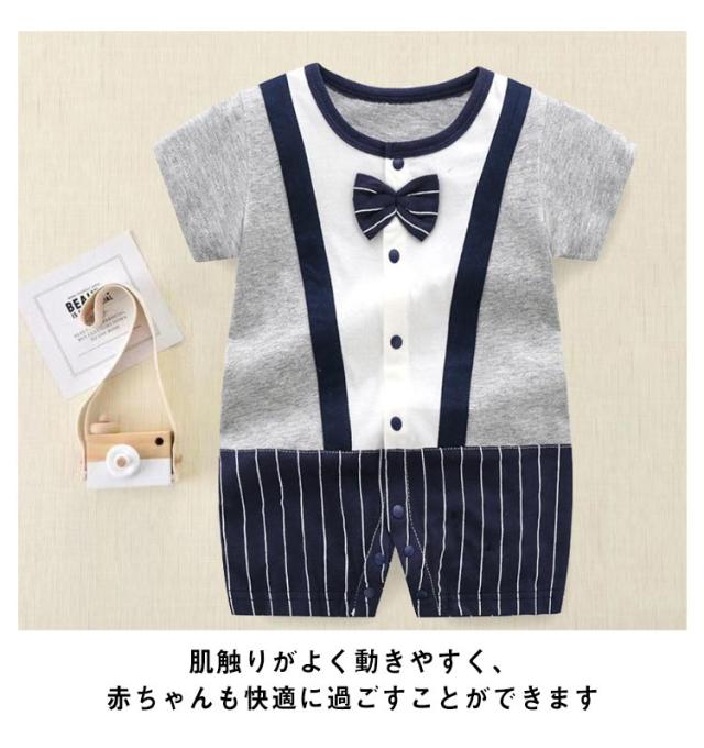 ベビー ロンパース フォーマル 男の子 半袖 カバーオール 子供 スーツ 紳士風 子供服 ボーイズ 赤ちゃん 半袖 赤ちゃん 前開き ボタン 誕生日 入園式 卒園式 キッズ ベビー服 ボディスーツ 出産祝い 結婚式 お宮参り ベビーウェア 夏 秋 冬 かわいい 60 70 80 90 送料無料
