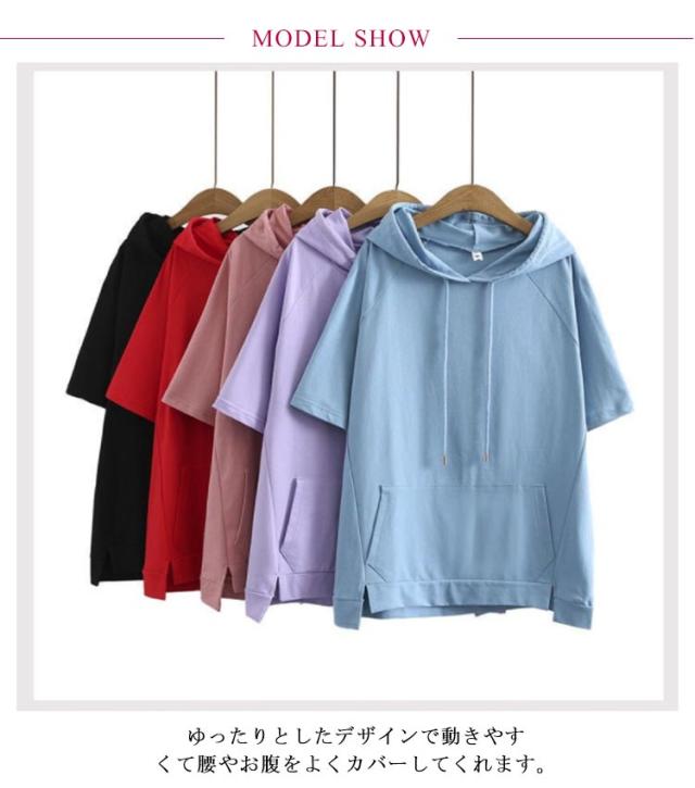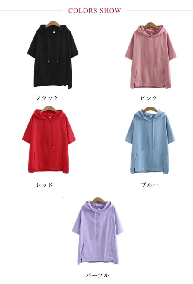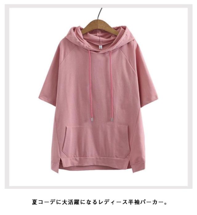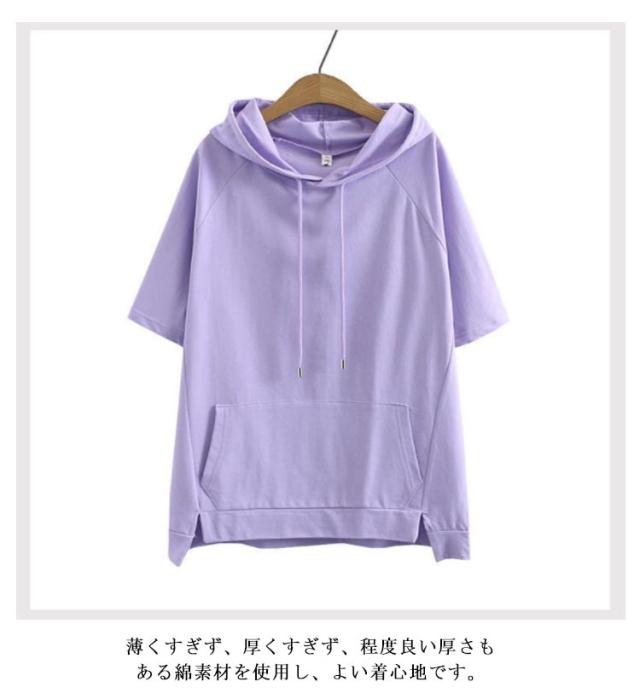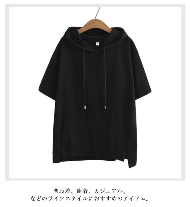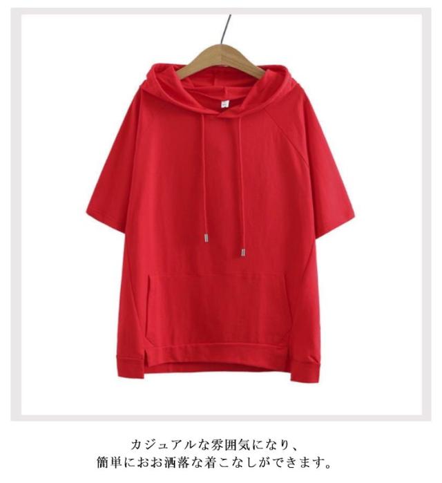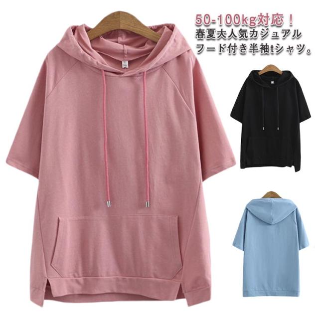 【50-100kg対応】パーカー 半袖 フード付き Tシャツ 無地 夏物 トップス レディース 半袖パーカー 半袖tシャツ カットソー プルオーバー パーカー ゆったり 大きいサイズ カジュアル 大人気 薄手 春 夏 おしゃれ コットン 綿 送料無料