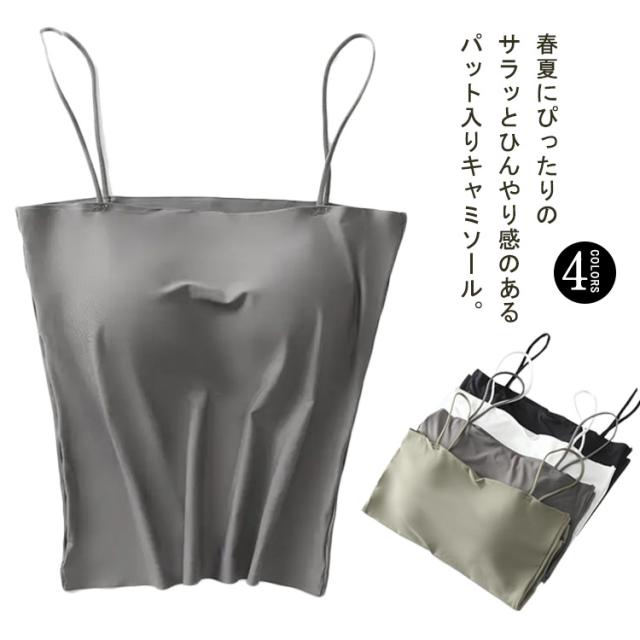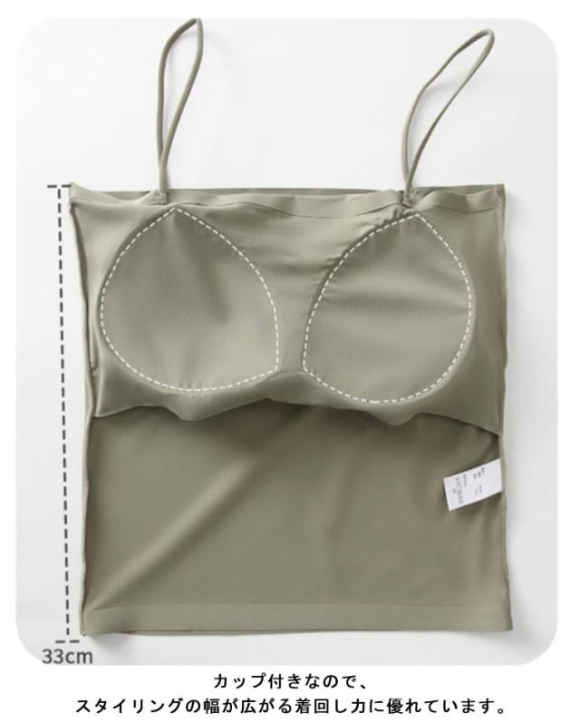 | 春夏にぴったりのサラッとひんやり感のあるパット入りキャミソール。 接触冷感・吸汗性・吸湿速乾・通気性・伸縮性もバツグン。 カップ付きなので、スタイリングの幅が広がる着回し力に優れています。 肌触りの良いさらりとした生地は伸縮性・吸水性に優れた冷感素材。 涼し気なトップスとしても肩回りが開いたワンピースやドレスのインナーとしてもOK♪ ダンスやヨガ・エクササイズのウェアとしもお薦めです。 | |
