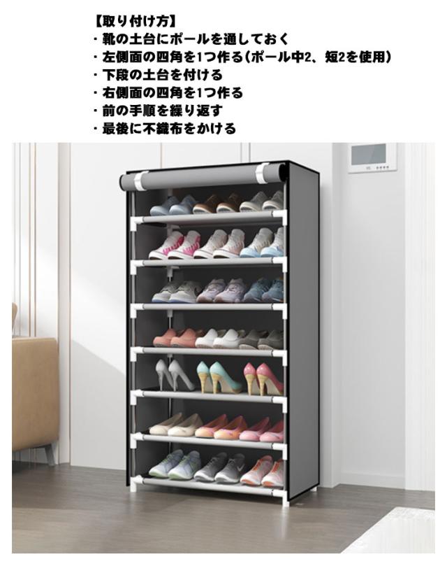 シューズラック 靴箱 下駄箱 防塵カバー 大容量 8段 6段 4段 玄関収納 靴棚 シューズ棚 おしゃれ スリム コンパクト 省スペース 整理 撥水 シューズボックス シューズ収納 靴収納 収納ラック 組み立て式 靴入れ 不織布 通気性 軽量 カビ対策 靴収納 収納棚 玄関