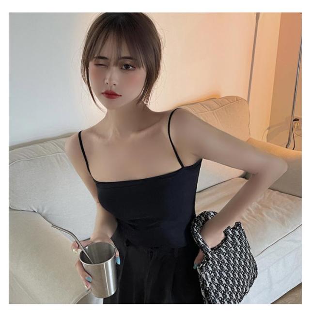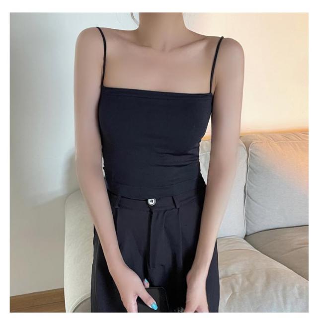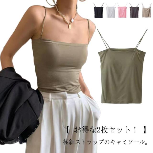 2枚セット 細ストラップ キャミソール レディース カップ付き カップ付きキャミソール ショート丈 インナー ナローストラップ ストラップ キャミ タンクトップ 下着 無地 シンプル かわいい パッド入り インナー キャミ 送料無料