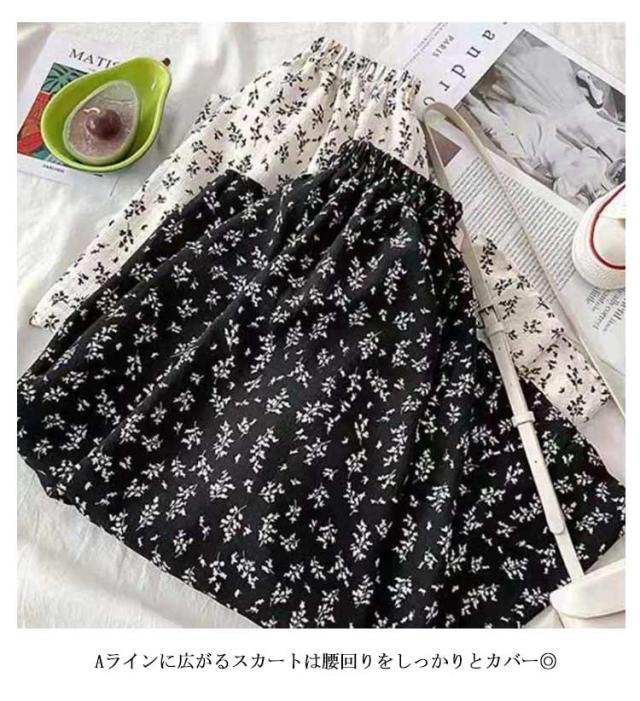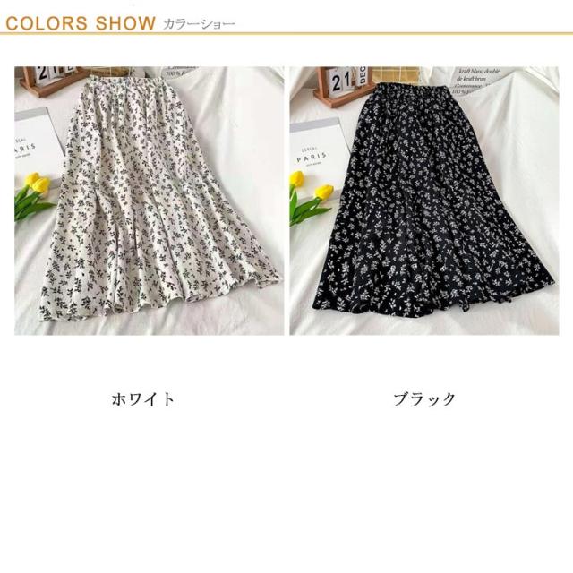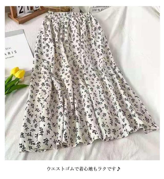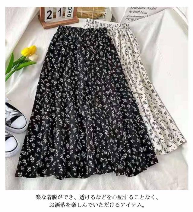 花柄ロングスカート ロングスカート 小花柄スカート 花柄 スカート フレアスカート ウエストゴム フラワープリント レディース ボトムス ロング丈 マキシ丈 膝下 ひざ下 Aライン スカート 20代 30代 春 夏 秋 ゆったり 送料無料