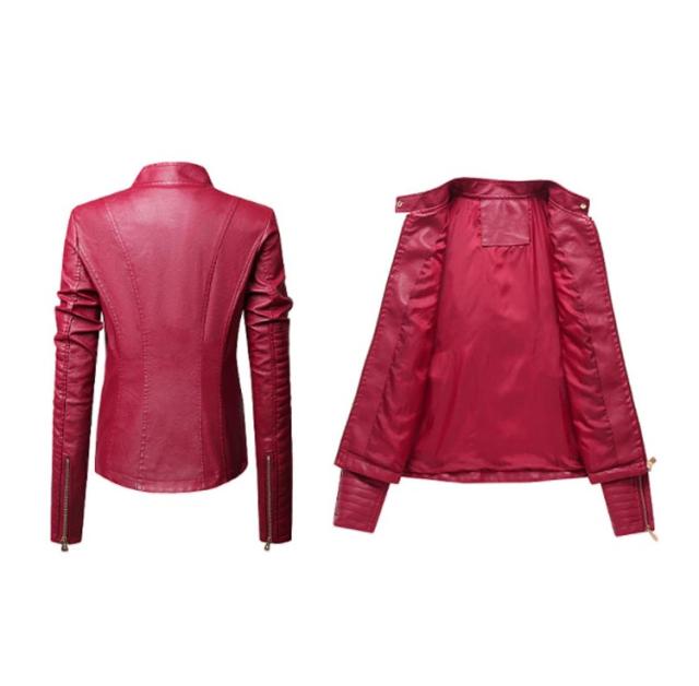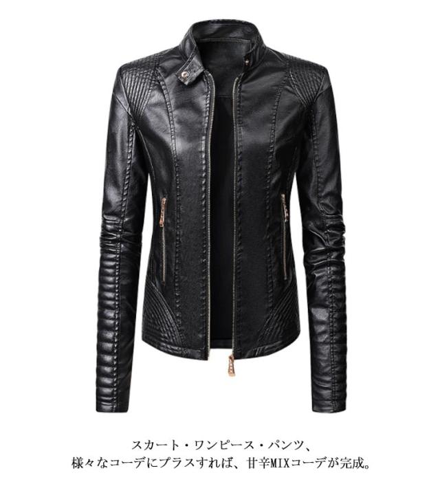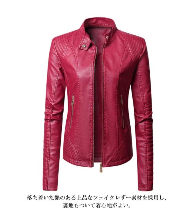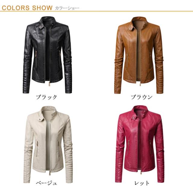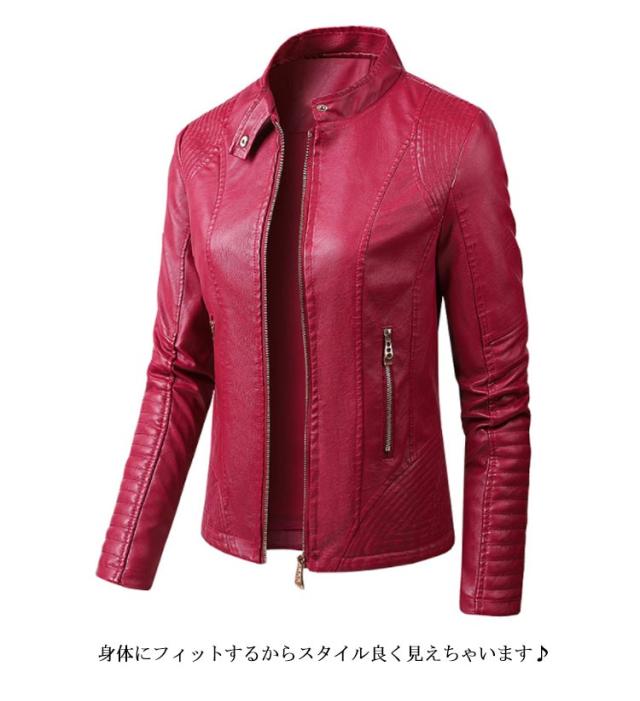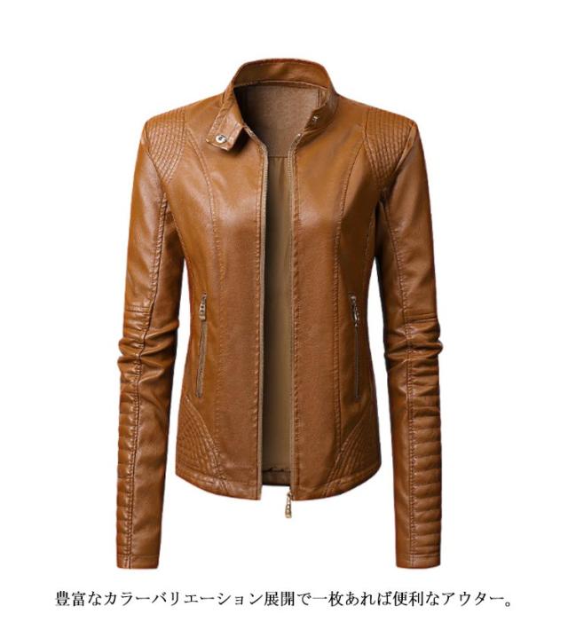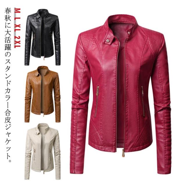 フェイクレザージャケット レディース 立ち襟 合皮ジャケット スタンドカラー ライダースジャケット PU合皮 フェイクレザー アウター ジャケット ブルゾン 春 秋 冬 おしゃれ 送料無料