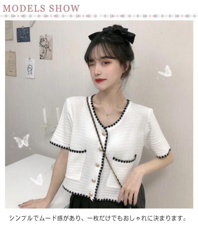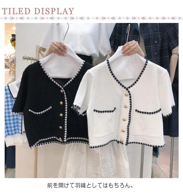 サマーツイードジャケット レディース 半袖 夏 ニット カーディガン サマーニット ツイードジャケット 薄手 接触冷感 涼しい ショート丈 Vネック トップス 羽織り オフィス カジュアル きれいめ 夏 夏服 送料無料