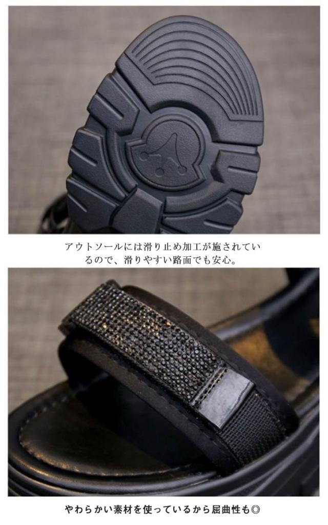 | この夏欠かせない厚底サンダル、人気サンダルはこちら! かかとに厚みのあるクッションを入れて靴ずれを防止。 触りも心地もよくやわらかい素材でかかとをホールド。安心して長時間歩ける。 足へのフィット感がかなり良くて、長時間履いていても快適でした。 安定感があり歩きやすく、約6cmヒールで美脚・脚長効果も抜群。 やわらかい素材を使っているから屈曲性も◎ アウトソールには滑り止め加工が施されているので、滑りやすい路面でも安心。 | |