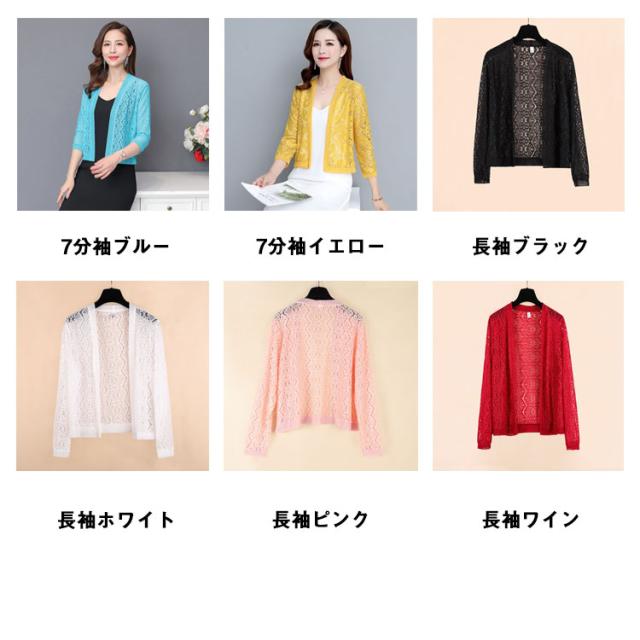 日焼け防止 レースカーディガン サマーカーディガン カーディガン 送料無料 七分袖 長袖 フラワーレース 透け編み ニットカーディガン 総レース 薄手 春夏 夏 冷房対策 オフィス ショート丈 シンプル おしゃれ 大きサイズ