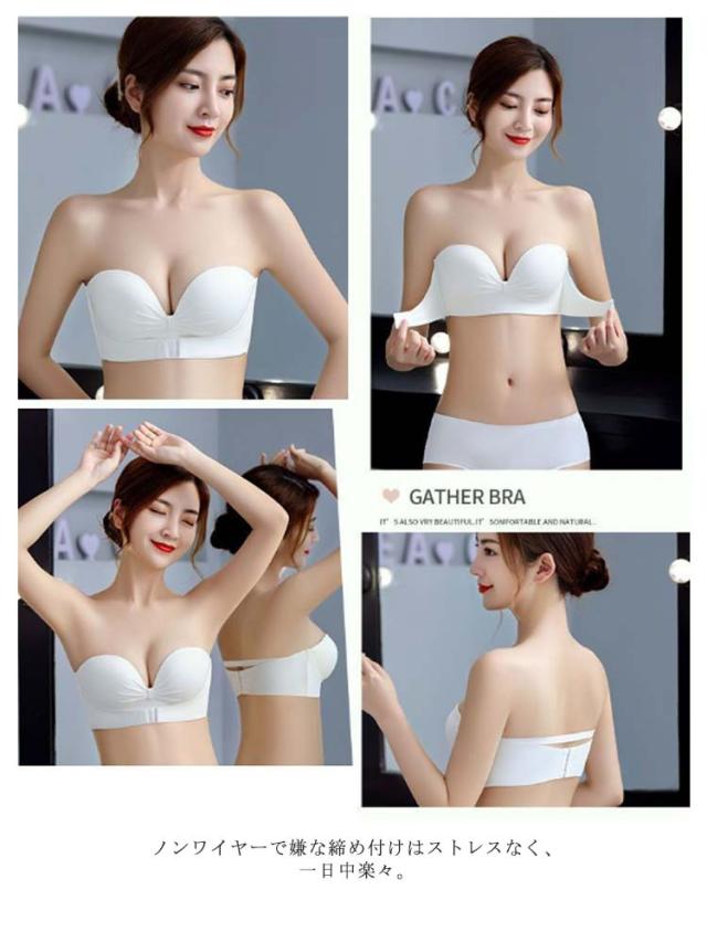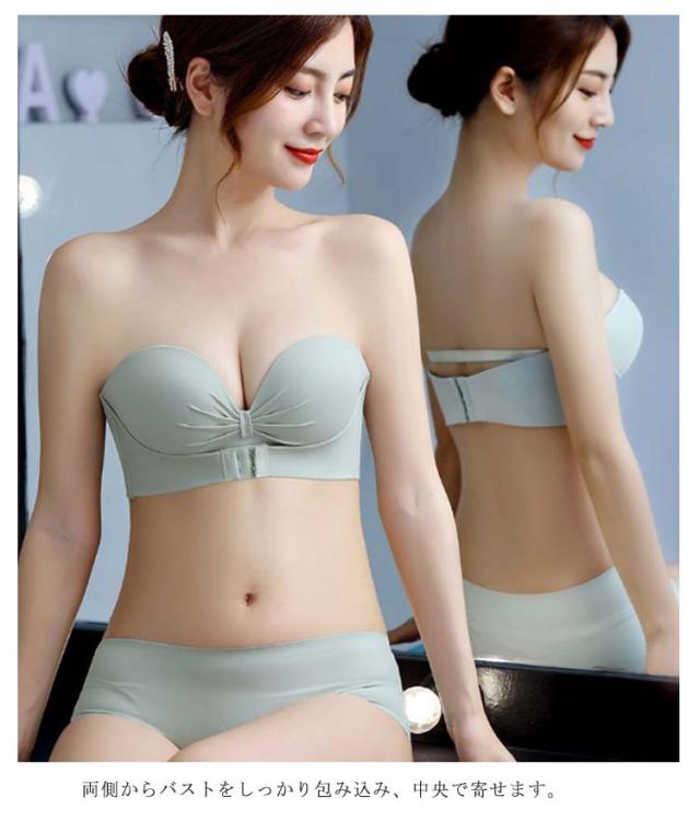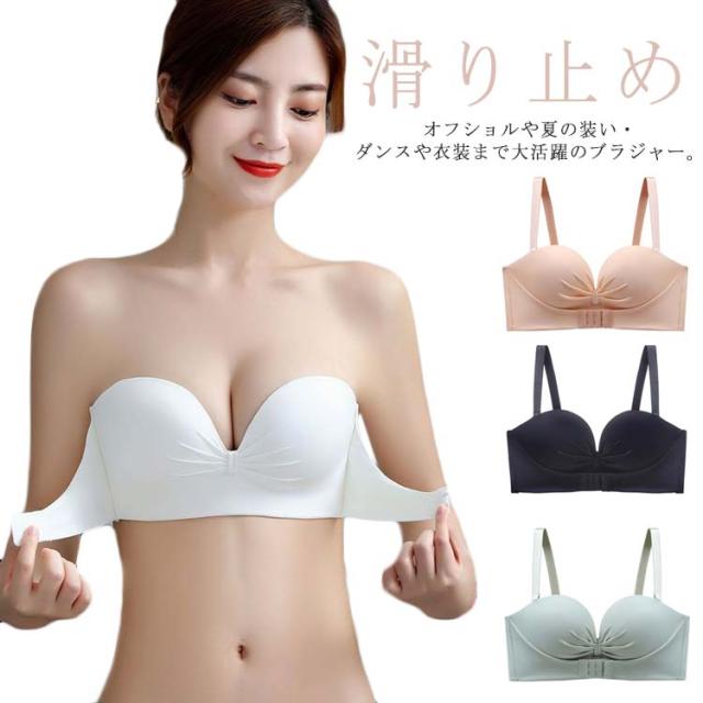 ストラップレスブラ 盛りブラ 落ちない 滑り止め 谷間メイク バストアップ 脇高 チューブトップ ノンワイヤー ブラジャー 肩紐なし 盛れる フロントホック シンプル 無地 ワイヤーなし 送料無料