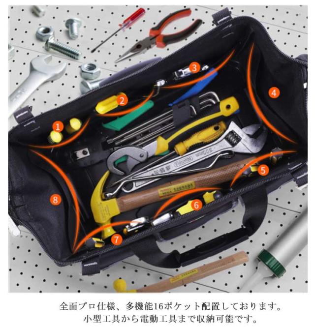 | 【大容量】全面プロ仕様、多機能16ポケット配置しております。小型工具から電動工具まで収納可能です。 【耐摩耗抜群】600D高密度オックスフォードを採用しています。強化縫製でしっかりと仕上げられ、耐荷重、耐摩擦、耐久性に優れてます。 【足置き台付き 】 ツールバッグを支える役割だけでなく、地面と2センチの隙間を作るので、劣悪な工場現場との直接接触を避けることも出来ます。 【多用途】工具入れベルトは様々な道具や工具の収納、携帯に、仕切りがついており大変便利です。ガーデニング、釣り、工芸、建築、大工、請負業者、屋根、ラインマン、石工、鉄工などの作業を携わる人に最適にします。日常生活のDIY活動だけでなく、自動車修理、木工および専門な修理活動も最適です。 【強化持ち手】持ち手は重さをバランスにして手に優しいです。 【 ファスナー】特にデザイン性と実用性は徹底的にこだわり、開閉のしやすさと、長くご使用頂けます。 | |