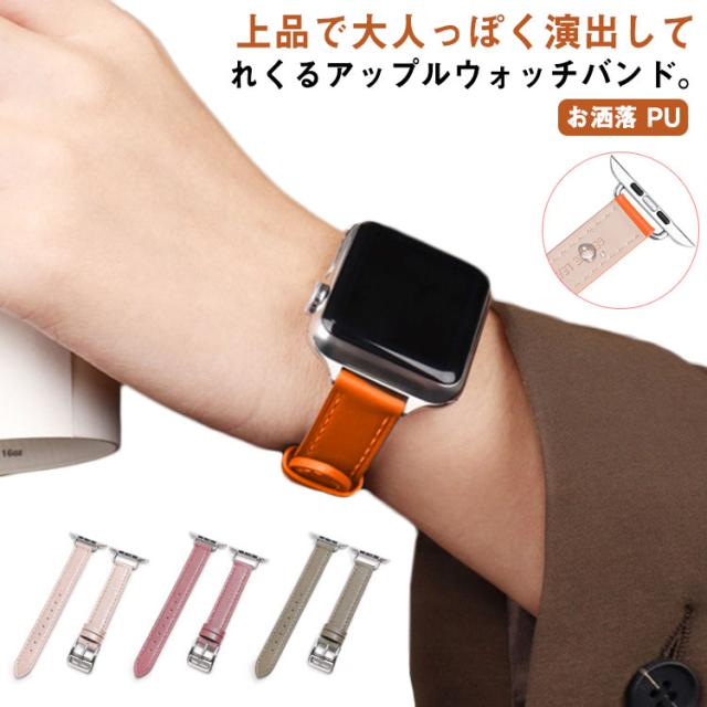 アップルウォッチバンド ベルト apple watch スポーツ レディース 合皮 お洒落 PUレザー くすみカラー ニュアンスカラー series8/7/6/SE/5/4/3/2/1 38mm 40mm 41mm 42mm 44mm 45mm 送料無料