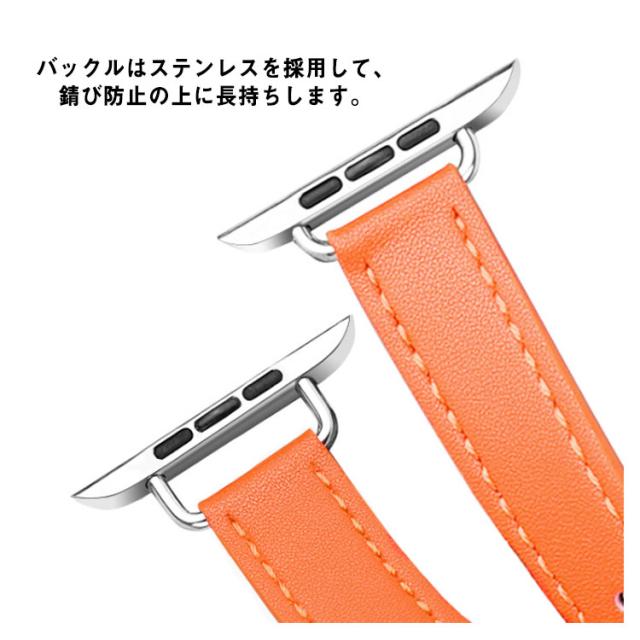 | 上品で大人っぽく演出してれくるアップルウォッチバンド。 バックルはステンレスを採用して、錆び防止の上に長持ちします。 上質なPUレザーを採用して、柔軟性に優れているため、着け心地が抜群です。 切断の小穴があり、サイズを自由に調整できるので、どなたでも安心してご利用いただけます。 シンプルなデザインだから、アップルウォッチ本来の美しさを損なわずにご使用いただけます。 | |