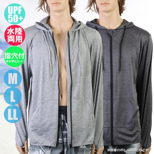 (パケット便送料無料)メンズ 杢柄ラッシュガードパーカー 長袖フルジップ 指穴付きUVジャケット 水陸両用/UPF50+ 1001906771/MRG-23