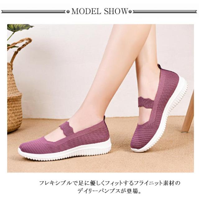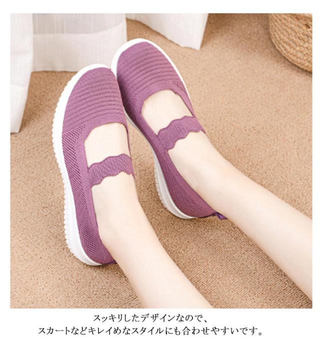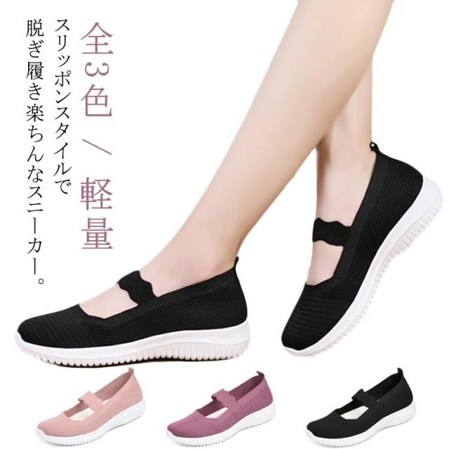 パンプス スニーカー ニットスカート レディース ゴム ストラップ スリッポン シューズ 靴 軽量 楽ちん おしゃれ カジュアル 通勤 通学 女性 婦人 看護師 痛くない 疲れない 母の日 プレゼント ギフト 無地 全3色