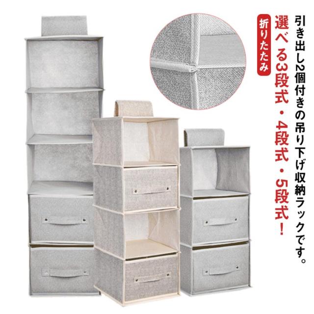 吊り下げ収納 ラック 3段 4段 5段 引き出し付き クローゼット 衣類収納 ラック 吊り下げボックス 下着 タオル バッグ 小物入れ スリム 隙間収納 大容量 吊るせる収納 衣類収納ボックス 折りたたみ 吊り下げ衣類ラック つり下げ収納 不織布 おしゃれ 北欧 新生活
