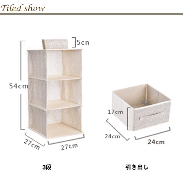 | サイズについての説明 | 3段:27x27x54cm 4段:27x27x72cm 5段:27x27x90cm 引き出し:24x24x17cm |