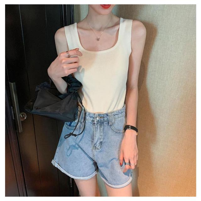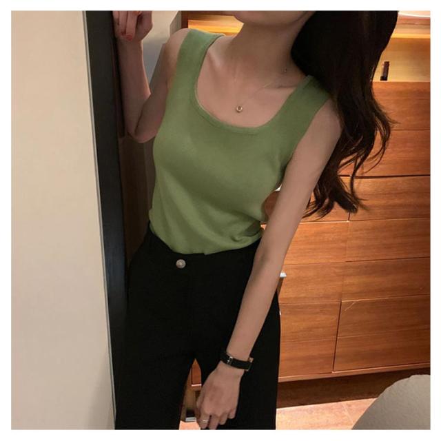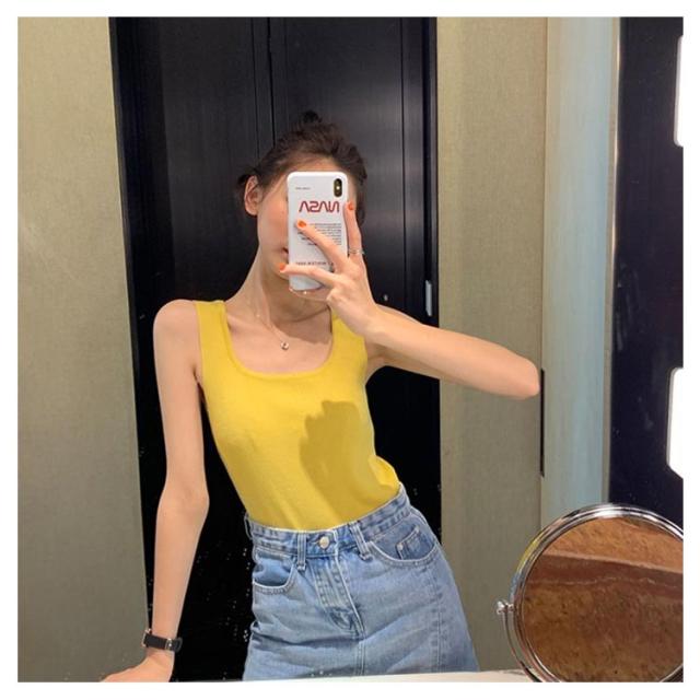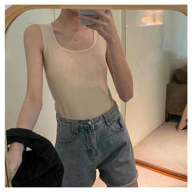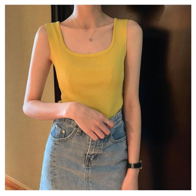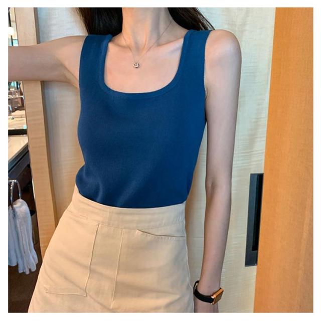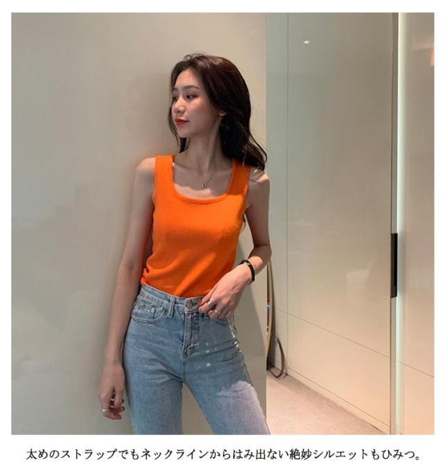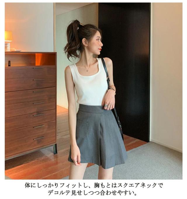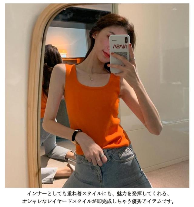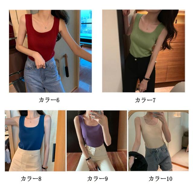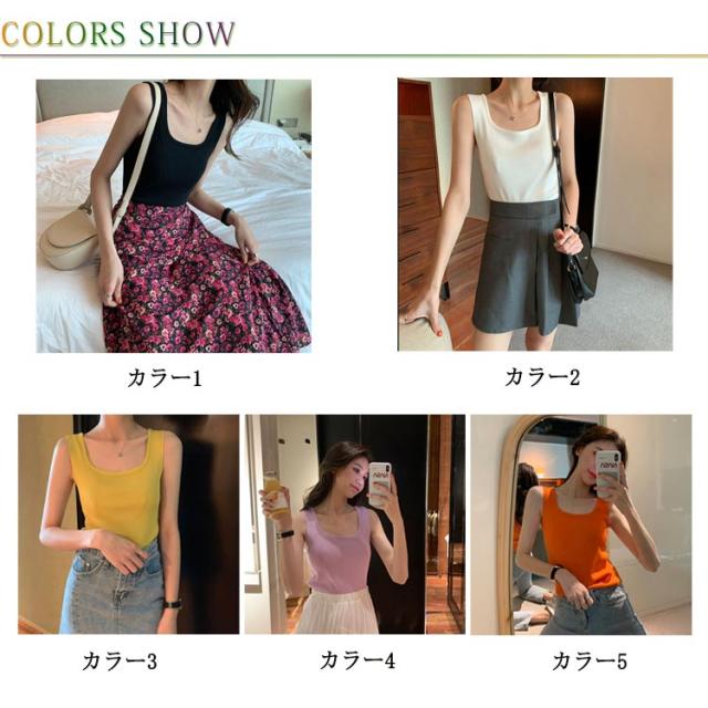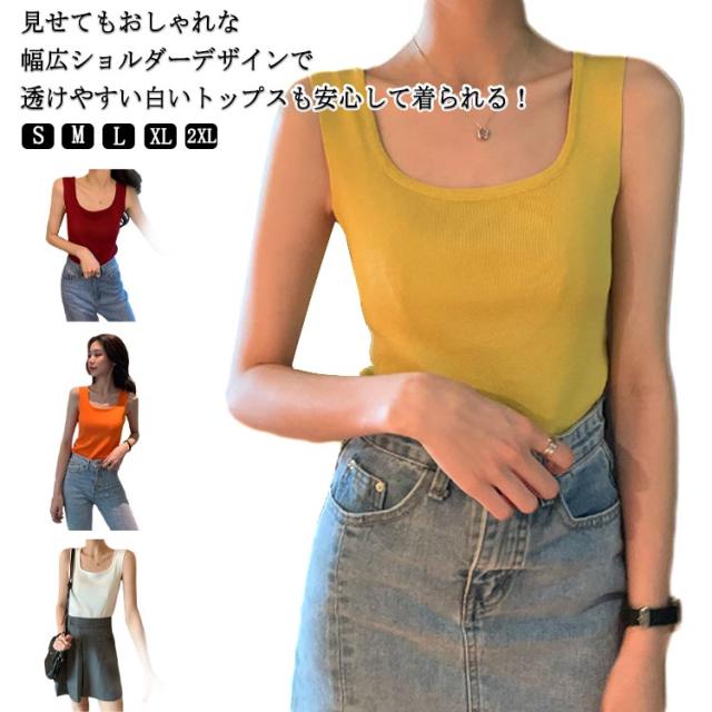 ニットトップス レディース タンクトップ サマーニット スクエアネック 大きいサイズ 全10色 キャミソール トップス ノースリーブ 見せる下着 重ね着 インナー 着?せ ストレッチ S M L XL 2XL