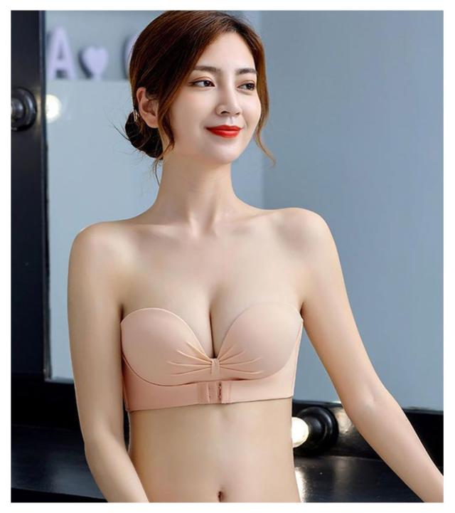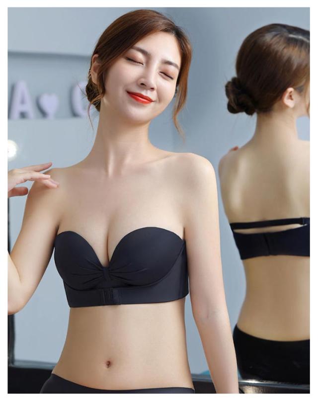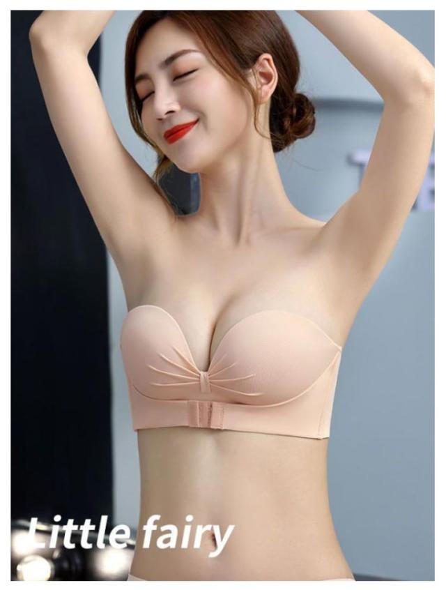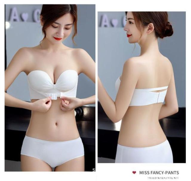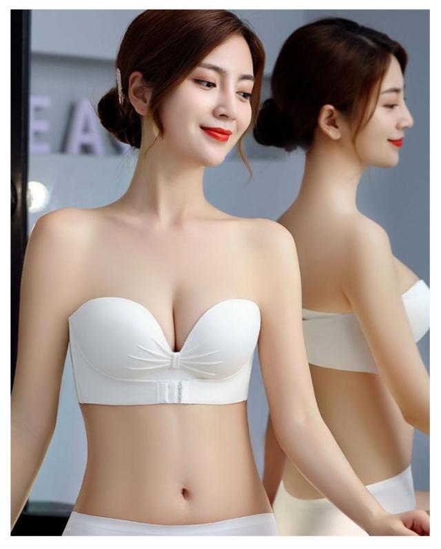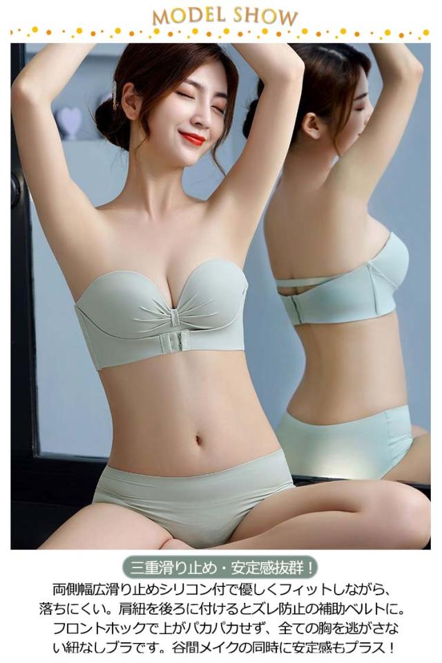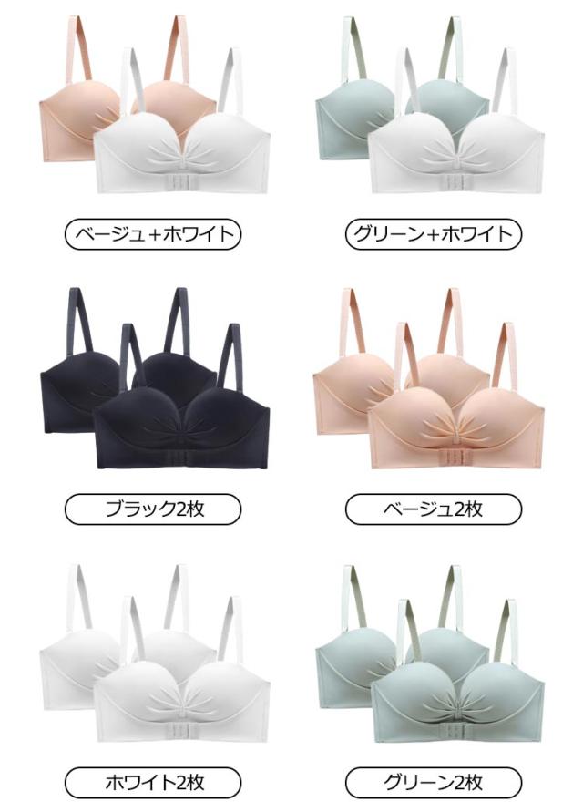 2枚セット ストラップレスブラ 肩紐なし フロントホック チューブトップ ずれない 落ちない 谷間 盛れる ブラジャー ストラップレス ブラ バストアップ 送料無料 滑り止め付 ノンワイヤー シームレスブラ オフショル ワンピース ドレス