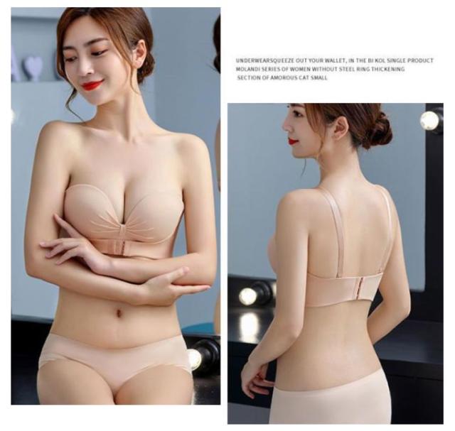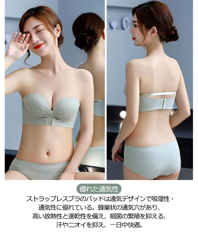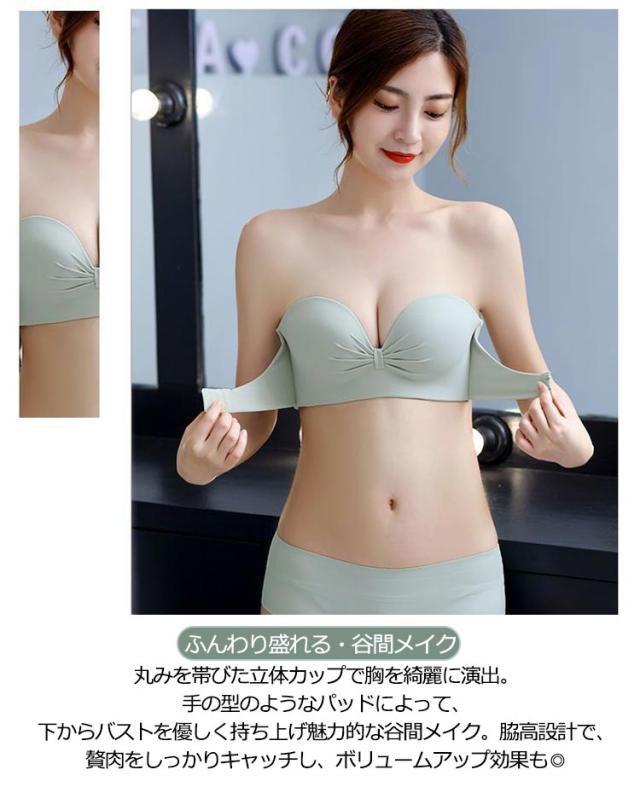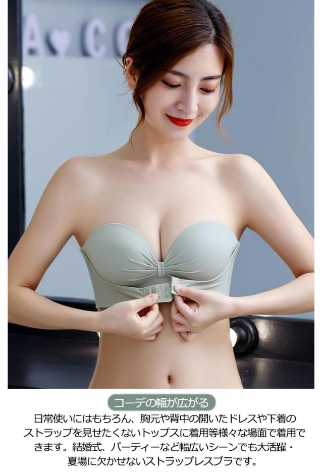 | 【三重滑り止め・安定感抜群!】両側幅広滑り止めシリコン付で優しくフィットしながら、落ちにくい。肩紐を後ろに付けるとズレ防止の補助ベルトに。フロントホックで上がパカパカせず、全ての胸を逃がさない紐なしブラです。谷間メイクの同時に安定感もプラス! 【ふんわり盛れる・谷間メイク】丸みを帯びた立体カップで胸を綺麗に演出。手の型のようなパッドによって、下からバストを優しく持ち上げ魅力的な谷間メイク。脇高設計で、贅肉をしっかりキャッチし、ボリュームアップ効果も◎ 【優れた通気性】ストラップレスブラのパッドは通気デザインで吸湿性・通気性に優れている。蜂巣状の通気穴があり、高い放熱性と速乾性を備え、細菌の繁殖を抑える、汗やニオイを抑え、一日中快適。 【コーデの幅が広がる】日常使いにはもちろん、胸元や背中の開いたドレスや下着のストラップを見せたくないトップスに着用等様々な場面で着用できます。結婚式、パーティーなど幅広いシーンでも大活躍・夏場に欠かせないストラップレスブラです。 | |