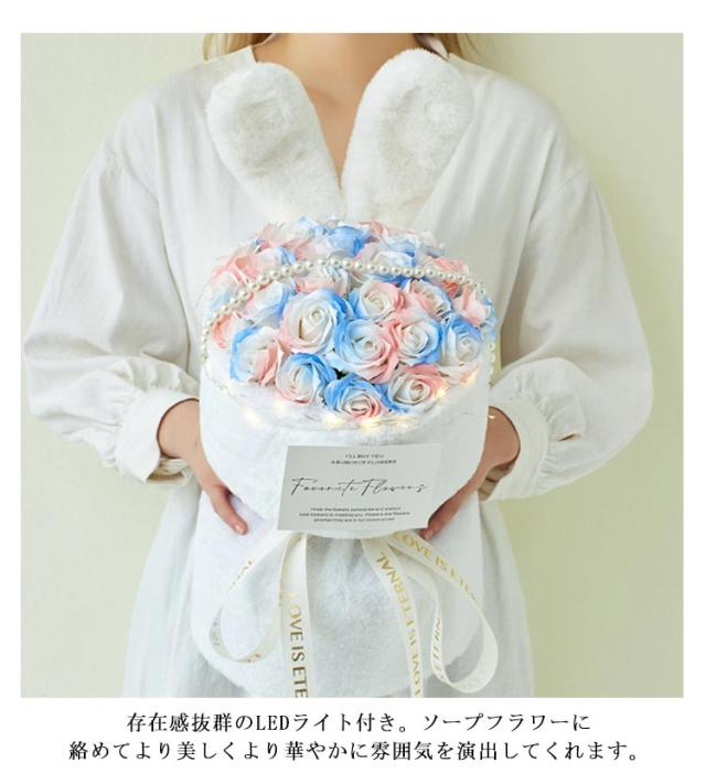 母の日 プレゼント ソープフラワー 花束 光る LED ライト付き 母の日ギフト ブーケ ソープ フラワー お誕生日 お花 誕生日 プレゼント スタンディング 義母 お祝い ギフト アレンジメント シャボンフラワー 大きい 花 大量 発表会 結婚祝い バラ ローズ 送料無料
