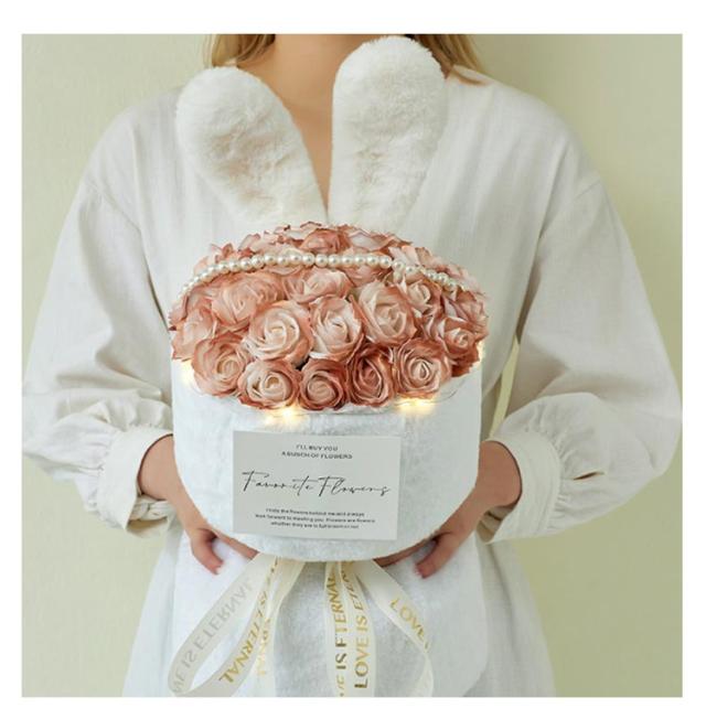 | 光るLEDライト付き、大きめサイズ感のソープフラワーの花束。 母の日や敬老の日はもちろん、結婚祝いや、出産、誕生などの記念日にも大活躍のソープフラワー。 存在感抜群のLEDライト付き。ソープフラワーに絡めてより美しくより華やかに雰囲気を演出してくれます。 花がボリュームがあり見栄えが良い。SNS映え間違いなし! 母を想う温かい気持ちが伝わる花。手入れが不要で、枯れない、花粉症の心配なし。 | |