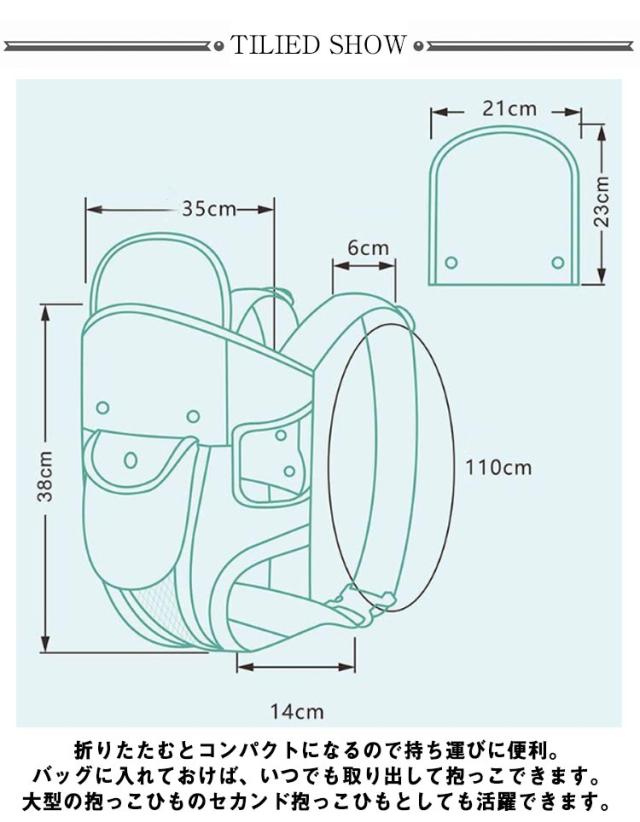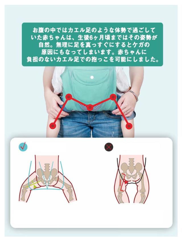 | 1人で簡単に装着でき、簡単に赤ちゃんを抱っこひもに入れることができます。 赤ちゃんが急に泣きだして抱っこしないといけなくなっても、場所を選ばずにすぐに抱っこできるので安心です。 肩ひもは幅広デザイン。肩に食い込むことがなく長時間の抱っこでも疲れにくい設計。背中までしっかりとヒモで覆うので、赤ちゃんの体重が分散されます。 折りたたむとコンパクトになるので持ち運びに便利。バッグに入れておけば、いつでも取り出して抱っこできます。大型の抱っこひものセカンド抱っこひもとしても活躍できます。 お腹の中ではカエル足のような体勢で過ごしていた赤ちゃんは、生後6ヶ月頃まではその姿勢が自然。無理に足を真っすぐにするとケガの原因にもなってしまいます。赤ちゃんに負担のないカエル足での抱っこを可能にしました。 | |
