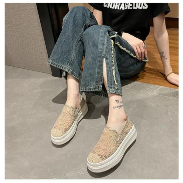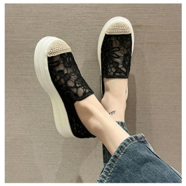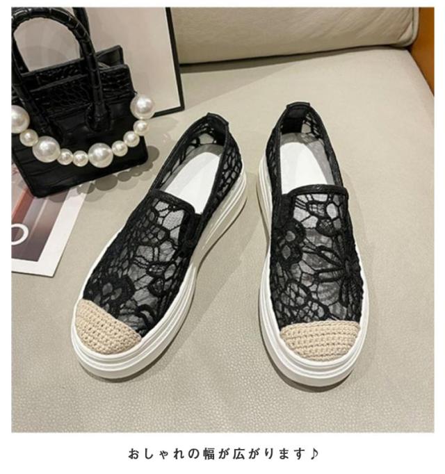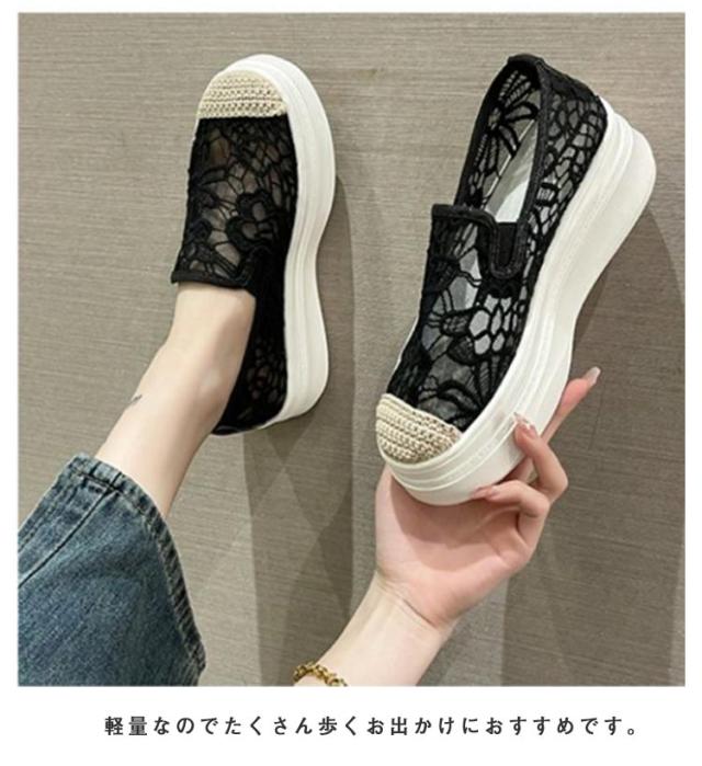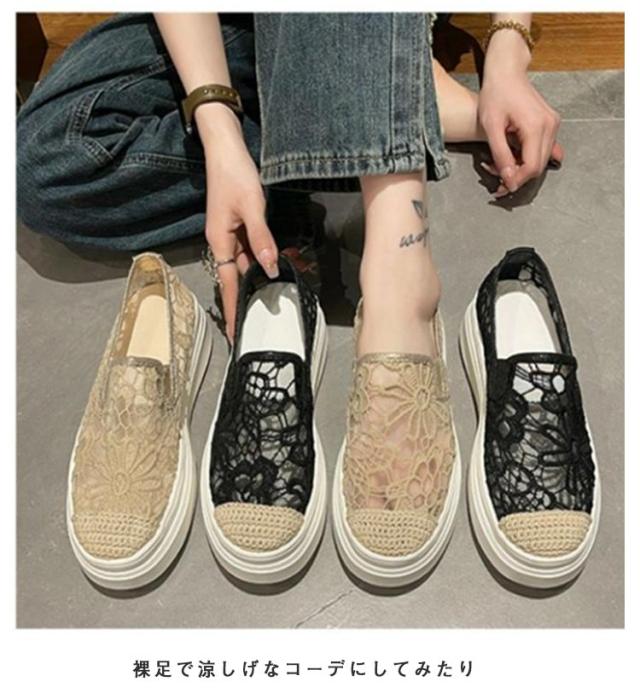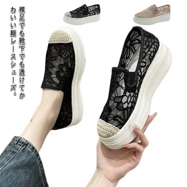 インヒールスリッポン レディース スリッポン スニーカー 透け感 レース フラットシューズ おしゃれ 透け シースルー 花柄 ローカット 大人カジュアル 痛くない 履きやすい 美脚 おしゃれ 可愛い 春 夏 軽い 軽量 ブラック ベージュ 送料無料