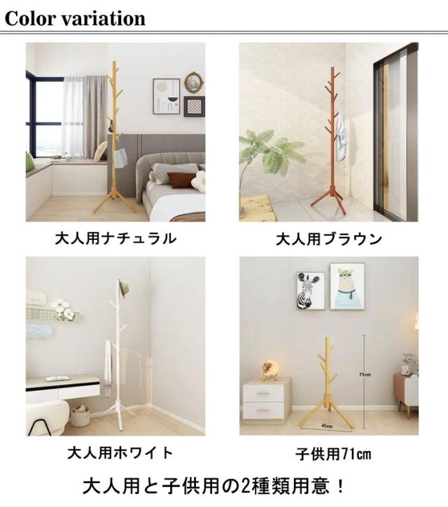 | 大人用と子供用の2種類用意! 8本のフックは丸みを帯びていて、かわいらしいデザイン。 天然木の風合いが北欧テイストなナチュラル感を演出。 表面は手触り良く滑らかな仕上がりで、洋服掛け、帽子掛け、カバン掛けとしてご使用いただけます。 組立て簡単!工具は一切要らず、ポールと台座部分はねじをくるくると回転すれば組み立て完成。 女性でも手軽に組み立てることができます。 生活に不可欠なコートハンガーです。 部屋、リビング、玄関など場所をとらないので、どこでも収納できます。 使わないときは分解するのも簡単です。 | |