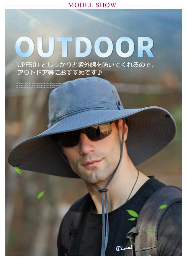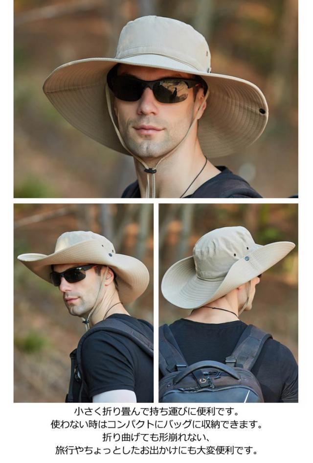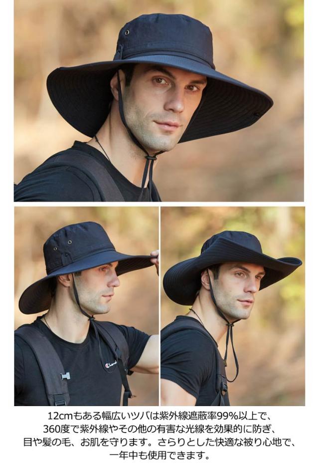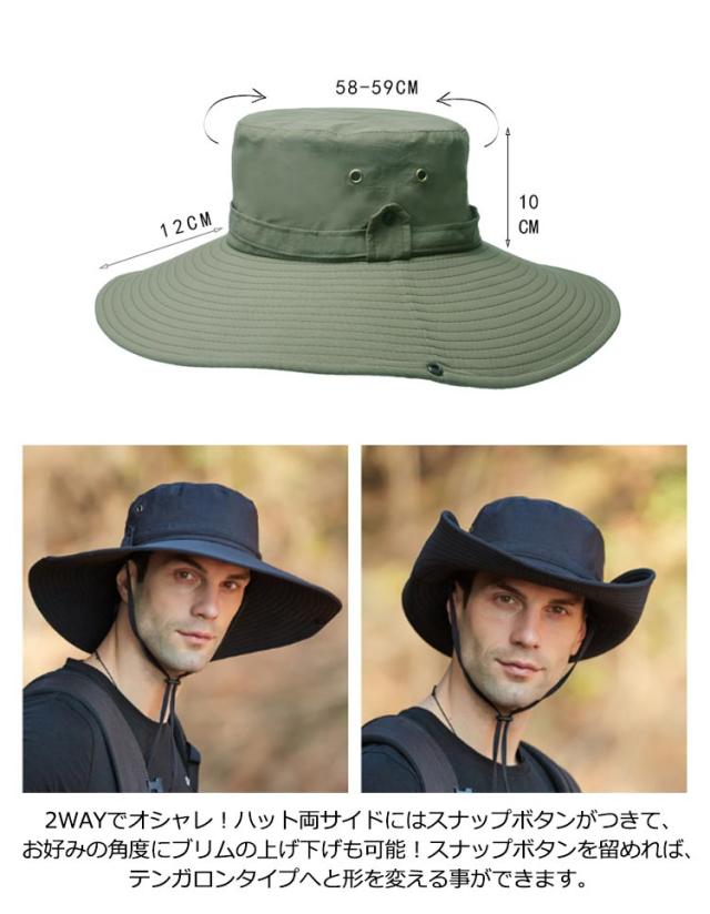 | 大き目のつば広がかっこいいメンズハットです。UPF50+としっかりと紫外線を防いでくれるので、アウトドア等におすすめです♪ 12cmもある幅広いツバは紫外線遮蔽率99%以上で、360度で紫外線やその他の有害な光線を効果的に防ぎ、目や髪の毛、お肌を守ります。さらりとした快適な被り心地で、一年中も使用できます。 サファリハット内側の汗止め部分は吸水・速乾に優れた素材を使用しています、熱がこもりにくく通気性も抜群で、頭の蒸れを緩和します吸湿発散性と速乾性を提供し頭をドライに保ちます。 2WAYでオシャレ!ハット両サイドにはスナップボタンがつきて、お好みの角度にブリムの上げ下げも可能!スナップボタンを留めれば、テンガロンタイプへと形を変える事ができます。 小さく折り畳んで持ち運びに便利です。使わない時はコンパクトにバッグに収納できます。折り曲げても形崩れない、旅行やちょっとしたお出かけにも大変便利です。 防水・撥水加工済なので急な雨も安全!天候に左右されやすいアウトドアやスポーツにおすすめです 実用性と装飾を兼ねている。あごひもが付けていますので緩み程度が調整できます。風が強い日にも帽子が飛ばされません。 つば広いデザインなので、日焼け止め、紫外線防止、UV効果の強い日差し季節には最適です。しっかり日差しを遮り、お肌をお守りします。登山、ランニング、ゴルフ、釣り、旅行、サイクリング、ドラニングなどのアウトドアスポーツにぴったりなUVカットハットです。 | |