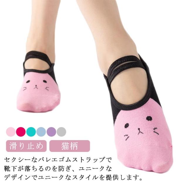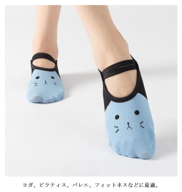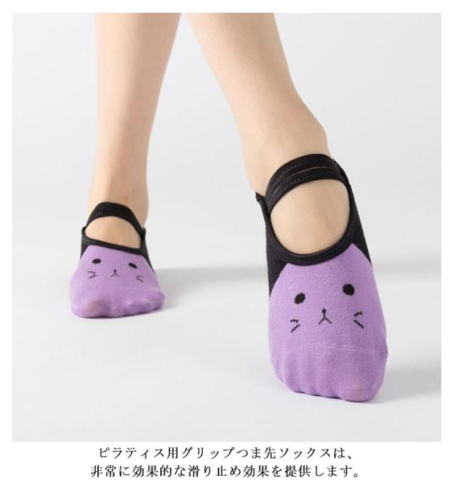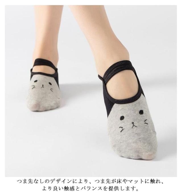 ヨガソックス レディース つま先なし 滑り止め 粘着グリップ 猫柄 ストラップ ピラティス ピュアバレエ ダンス 裸足 ワークアウト用 伸縮性 ノンスリップ 送料無料 春 夏
