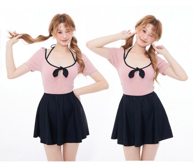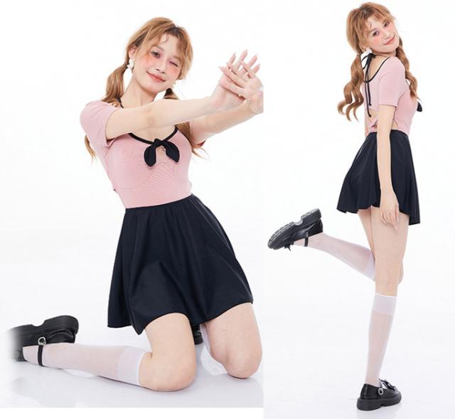 【送料無料】モノキニ水着 超かわいい水着 半袖 モノキニ水着+スカート 無地 モノキニワンピ2点セット体型カバー 10代 20代 30代 可愛い温泉