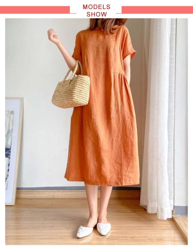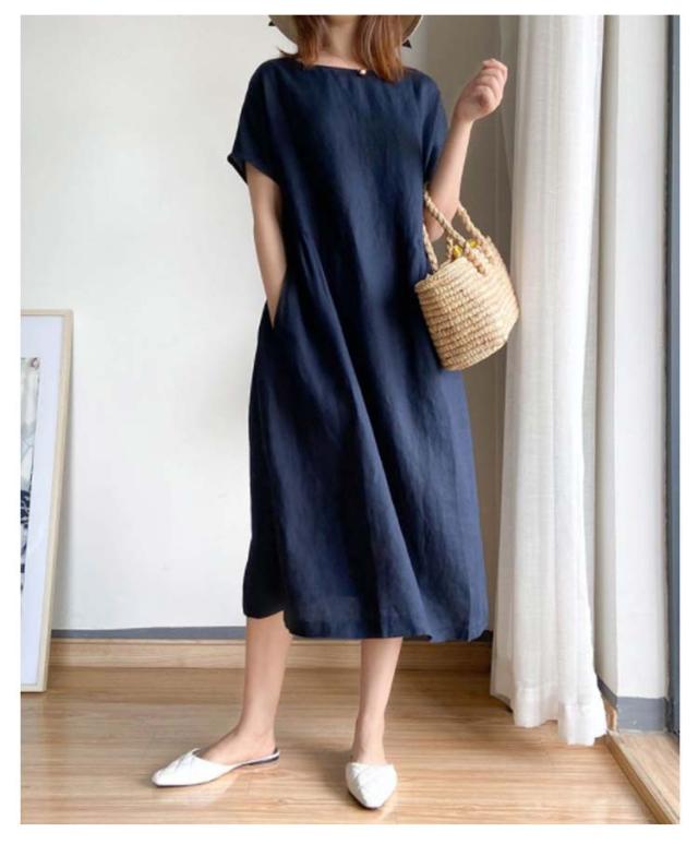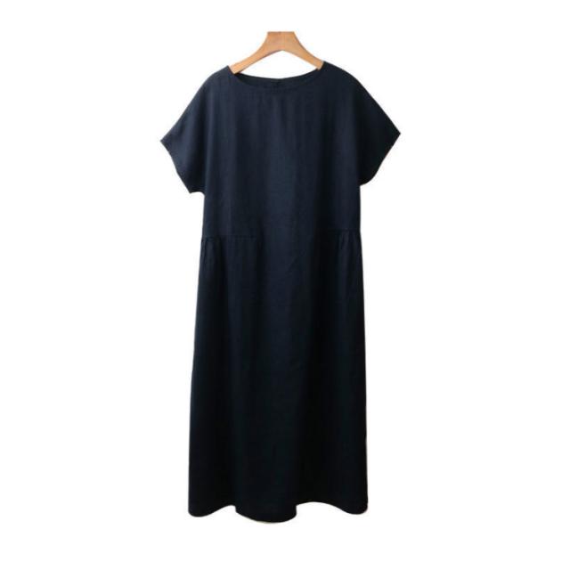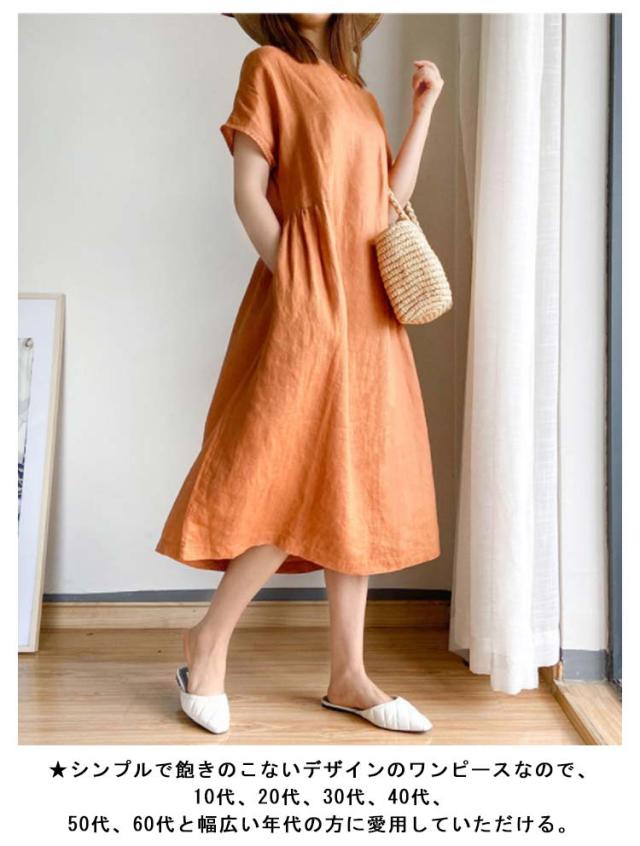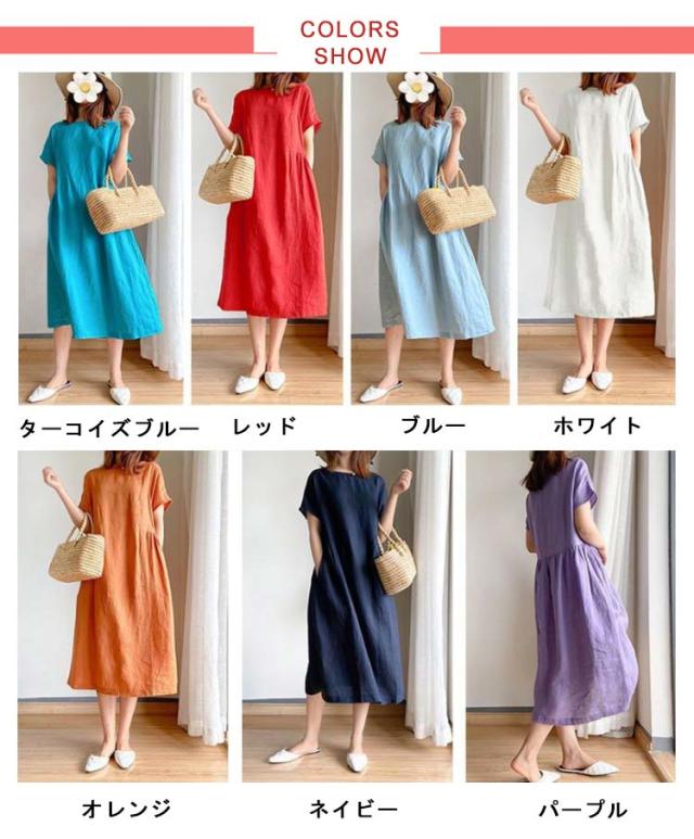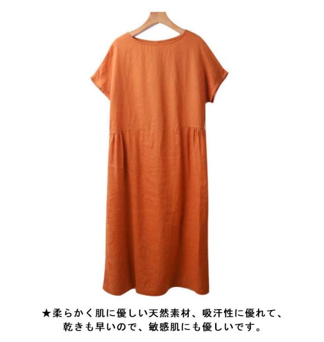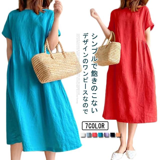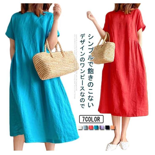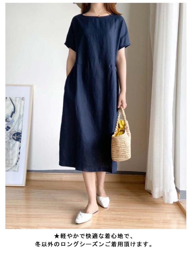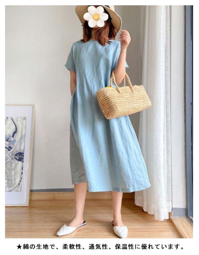 ワンピース レディース 夏 ロングワンピース 半袖 綿 マキシワンピース クルーネック ナチュラル 森ガール シンプル ゆったり 体型カバー 無地 着回し 大きいサイズ ママ服 ルームワンピース