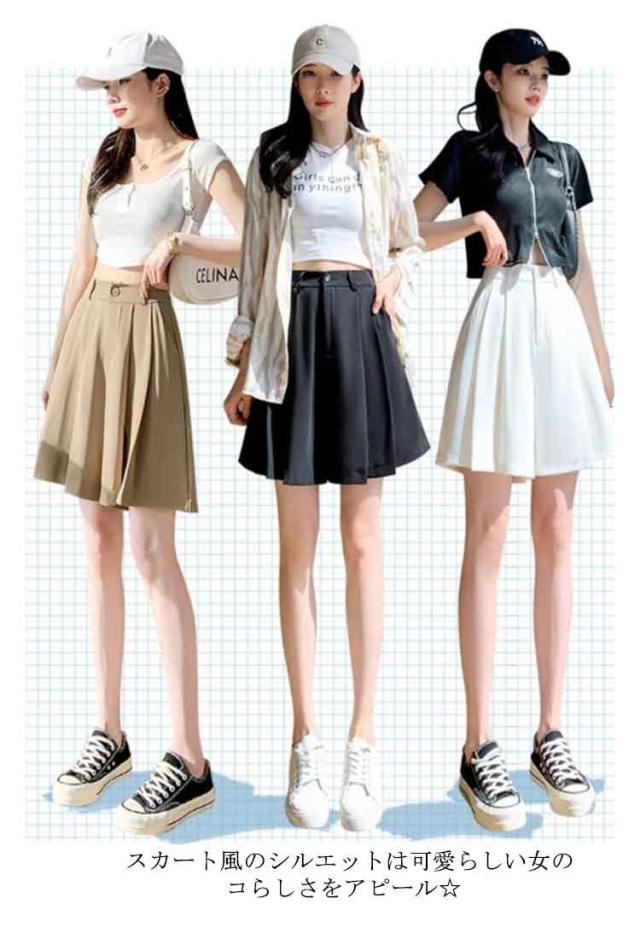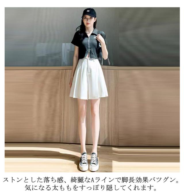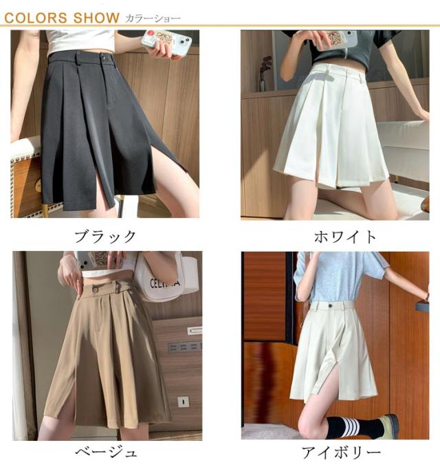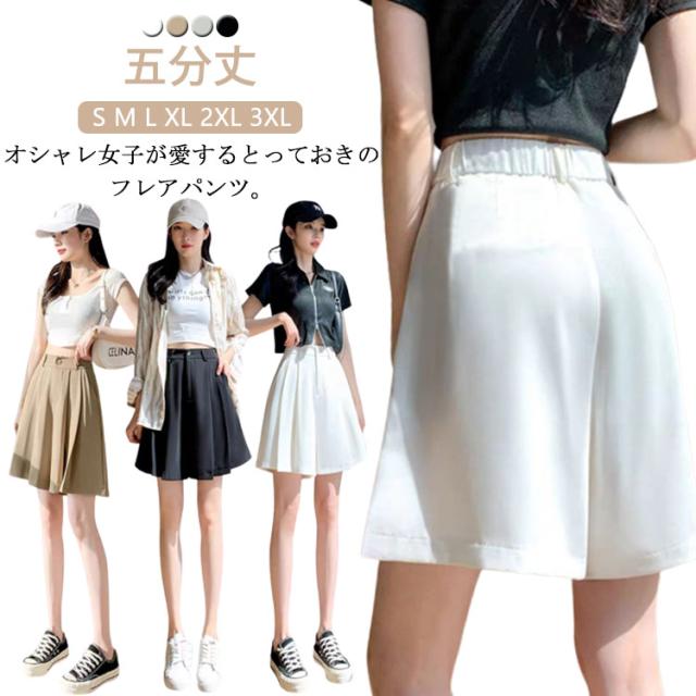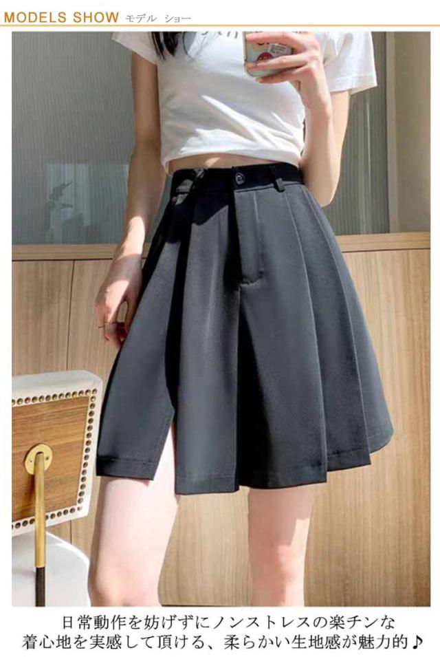 ワイドパンツ ハーフパンツ プリーツスカート ゆったり Aライン スカート見え スカンツ スカーチョ ウエストゴム 五分丈 涼しい 薄手 リラックスパンツ ガウチョパンツ 短パン キュロット パンツ 送料無料