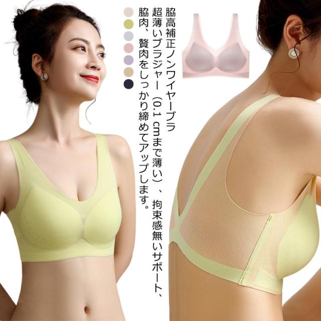 | 脇高補正ノンワイヤーブラ 超薄いブラジャー(0.1 cmまで薄い)、拘束感無いサポート、 脇肉、贅肉をしっかり締めてアップします。 ノンワイヤーブラは柔らかく着心地の良い高弾性接触冷感素材で、 肌にやさしく、タイトではなく、 通気性と速乾性の機能が涼しく快適触感を生み出します。 幅広ストラップは滑りにくく、胸元をしっかりサポートします。 24時間着用しても肌や肩に負担がかけずに。 さらに、転写プリント洗濯ラベルの設計で睡眠の快適さが向上します。 | |