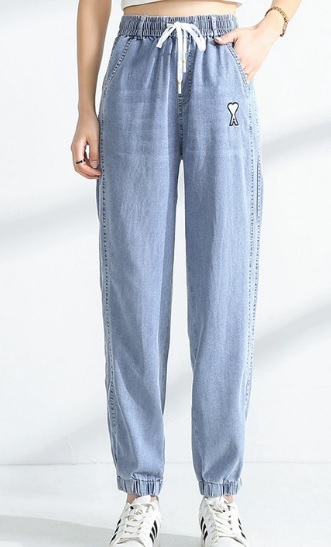 デニムパンツ スウェットパンツ 美脚 細見え ブルー ロゴ 刺繍 ゆったり ロング丈 春夏 大きめ おしゃれ 楽 かっこいい 10代 20代 30代 お出かけ デート 着まわし 大人女子 カジュアル 部屋着 ラフ クール スポーツ トレンド 人気