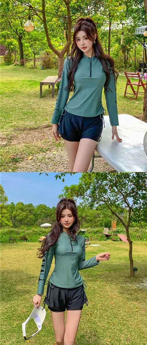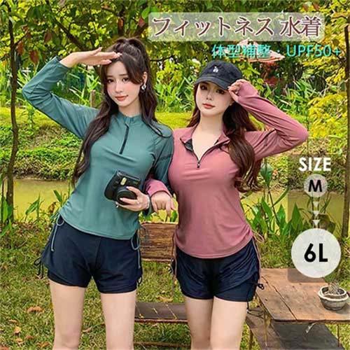 大きいサイズ 水着 フィットネス レディース 長袖 フィットネス水着 グリーン ワインレッド 二の腕もカバー 体型カバー 紫外線カット 6L 5L 4L 3L LL 2L L M ぽっちゃり レオタード水着 30代 40代 50代 ママ ミセス シニア おしゃれ