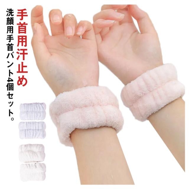 送料無料 手洗い用 ウォッシュバンド 通用 洗顔リストバンド 手首バンド マイクロファイバー 手首用汗止め スポーツリストバンド 吸水 速乾 ふわふわ 柔らかい スポーツ 運動 軽い 4個入り