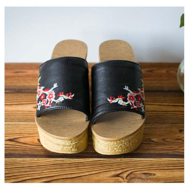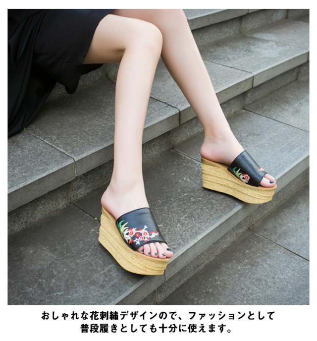 エスニック サンダル 花柄 ミュール レディース おしゃれ 刺繍 8cm レザー ウェッジソール 美脚 カジュアル 厚底 ストーム厚底 コンフォート フェイクレザー 歩きやすい 疲れない サボサンダル