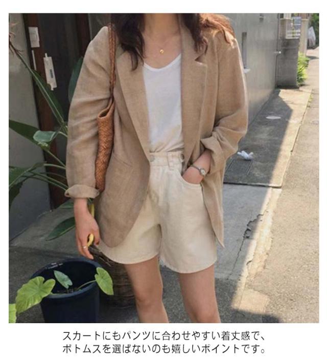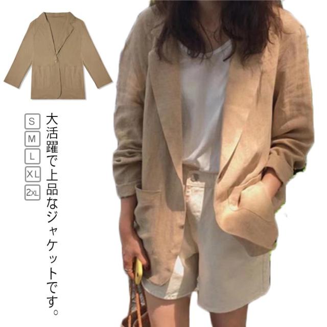 ベージュ サマージャケット スーツ 春 ウオッシャブル ビジネス フォーマル オフィス カジュアル リネン 無地 麻調 テーラード 麻 韓国 レディース サマー 夏 リネン 涼しい 軽量 洗える リネンコットン ショート丈 長袖 ジャケット