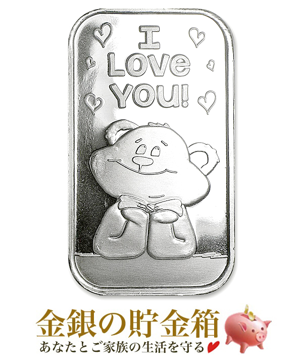 シルバーバー 1オンス アイ・ラブ・ユー (クマ)純銀 インゴット シルバータウン社発行