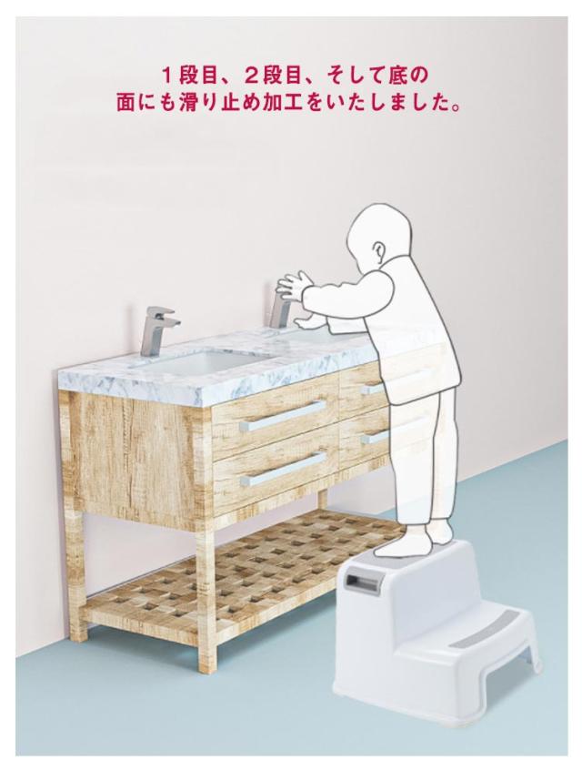 | 【持ち運びラクラク】 軽量設計のため、お子さまが一人で持ち運べるようにいたしました。 【安心の滑り止め付き】 1段目、2段目、そして底の面にも滑り止め加工をいたしました。 【オシャレなデザイン】 踏み台は、出しっぱなしにしてもインテリアを邪魔しないよう、シンプルでオシャレなデザインにいたしました。 | |