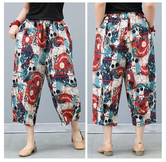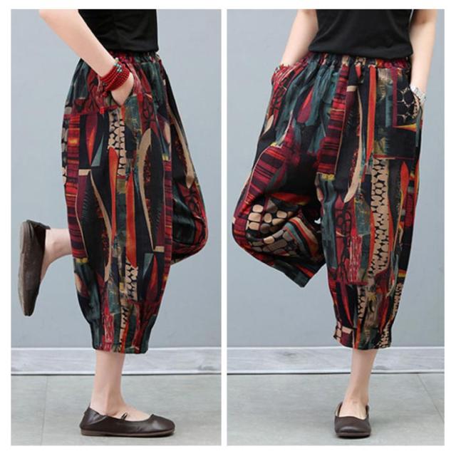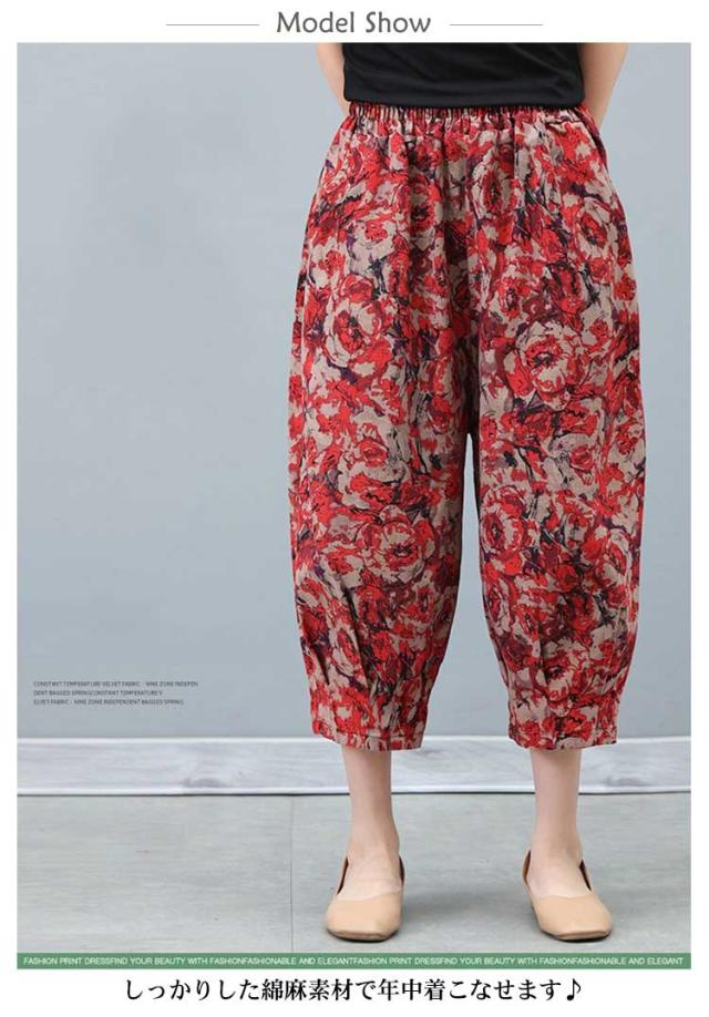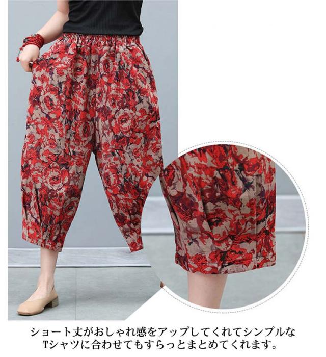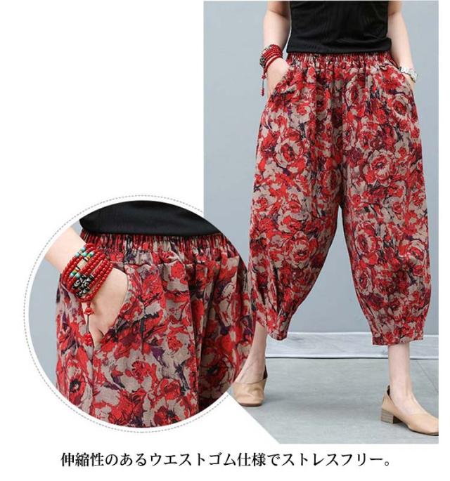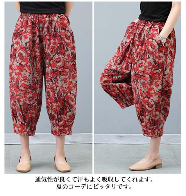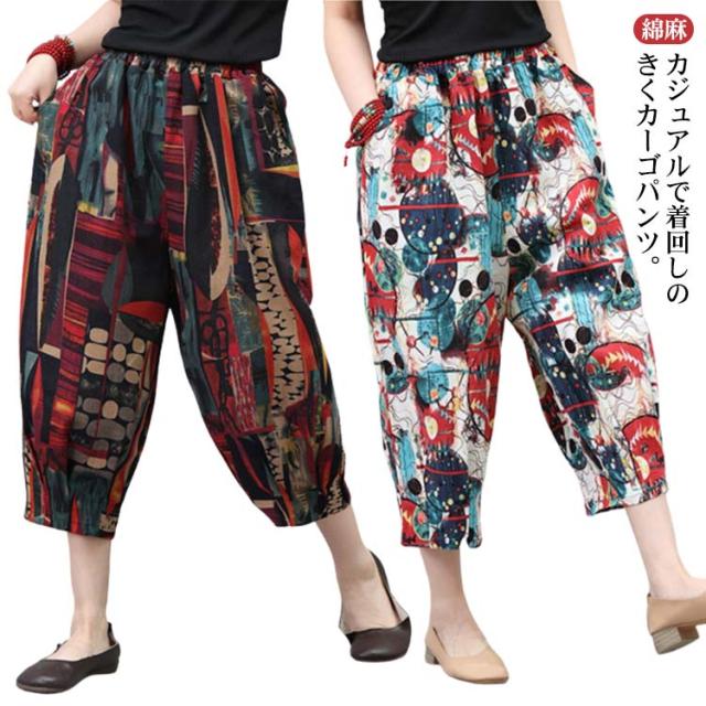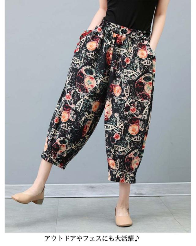 七分丈 夏 サルエルパンツ レディース 柄 ガウチョパンツ きれいめ 大きいサイズ プリント 通学 涼しい ワイドパンツ ボトムス かわいい ベリーダンス 大きめ 花柄 テーパードパンツ ストレッチ カーゴパンツ ゆったり ヨガ 黒 送料無料 カジュアル テイリー 綿麻