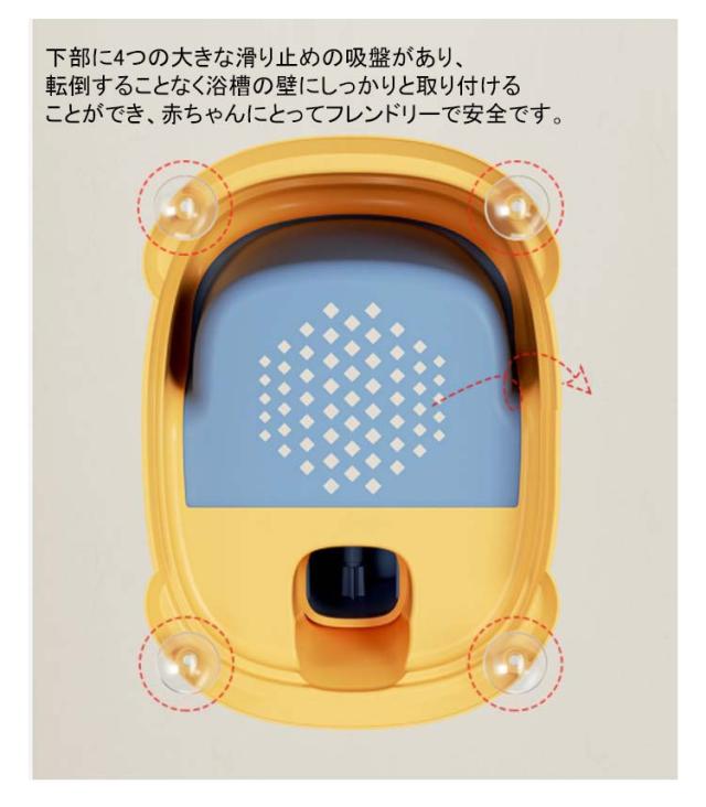 | はじめてのお風呂から使えるベビーバスチェア。 水が溜まらない設計なので、お風呂でも気楽に使用が可能です。 体になじむ柔らかいポリウレタン素材を使用。赤ちゃんの皮膚を傷つける心配がありません。 下部に4つの大きな滑り止めの吸盤があり、転倒することなく浴槽の壁にしっかりと取り付けることができ、赤ちゃんにとってフレンドリーで安全です。 なカラーでお部屋にも馴染みやすく、インテリアを邪魔しません。 | |