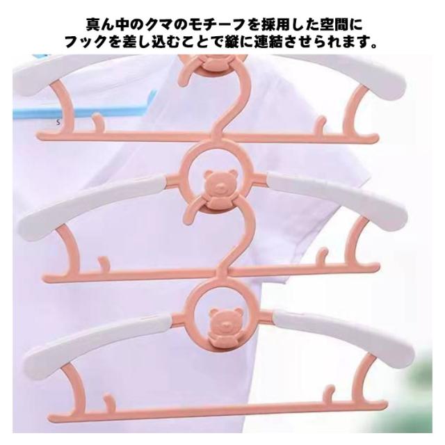 | ベビー服から大人の服まで長く使える!7段階で調整できる伸縮ハンガーです。 真ん中のクマのモチーフを採用した空間にフックを差し込むことで縦に連結させられます。 肩部分に滑り止め付きなので、服が滑り落ちにくく、安心して大切な服を吊るしておけます。 フック付きなのでキャミソールやスカートなども形を崩すことなく干せます。 お洋服の肩に当たる部分が丸みを帯びた形で作られているため、衣類を傷つけにくいのが特徴です。 | |