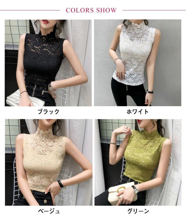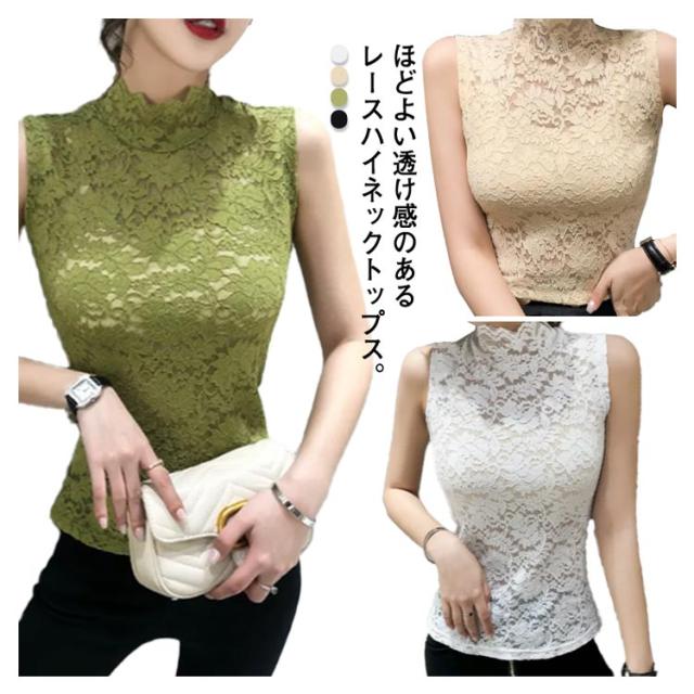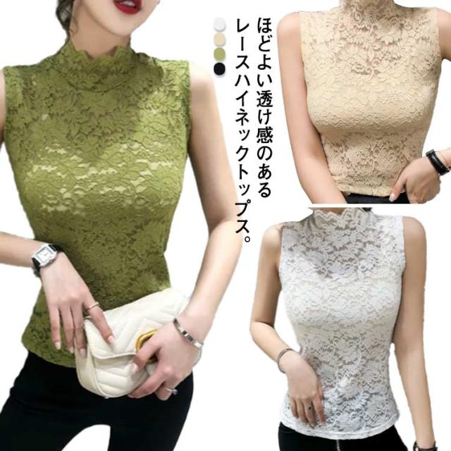 レース タンクトップ シアートップス レディース ハイネック ノースリーブ 春夏秋冬 トップス 花柄 透け感 薄手 インナー レース レイヤード 重ね着 かわいい カジュアル きれいめ おしゃれ かわいい 刺繍