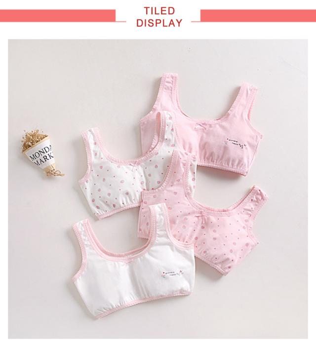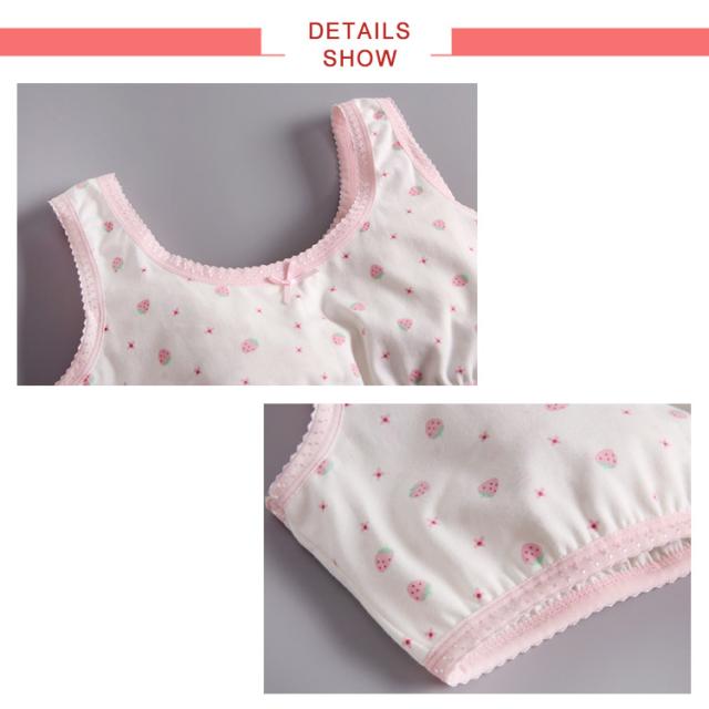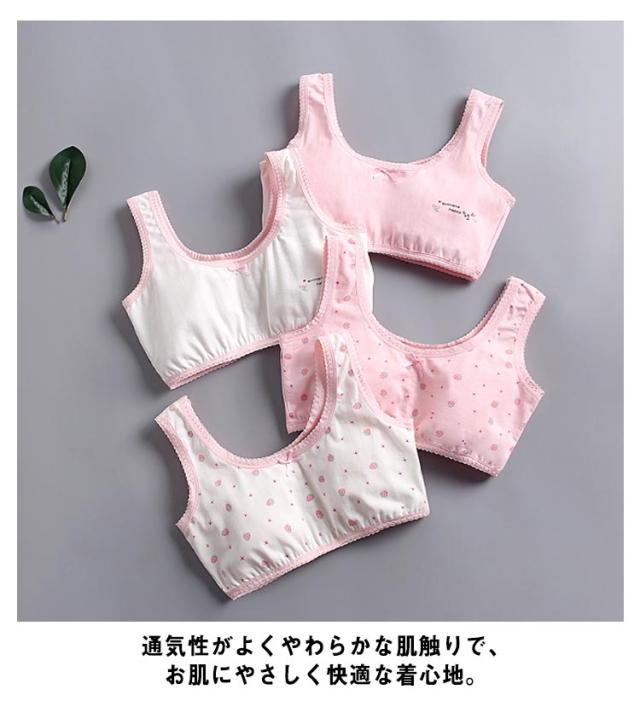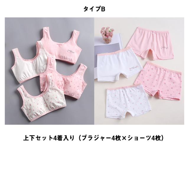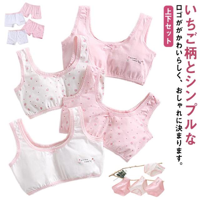 下着 キッズブラ 下着 苺 コットンインナー キッズ 女の子 いちご柄 上下セット 綿 ピンク 子供 セットアップ ジュニア ブラジャー4枚&ショーツ4枚セット!ジュニアブラ 小学生 中学生 高校生 かわいい 130 140 150 ブラトップ