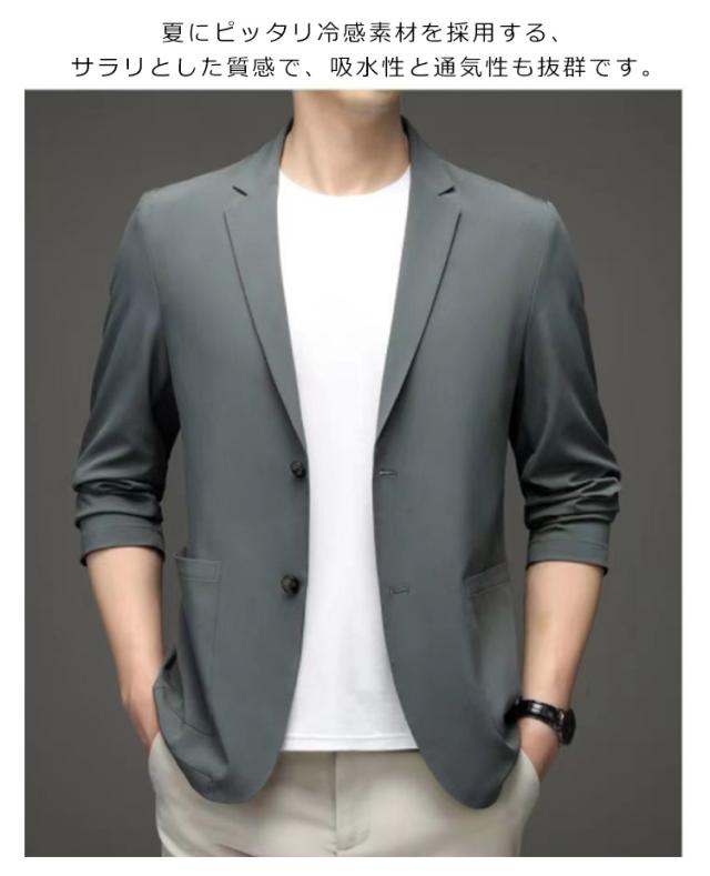サマージャケット メンズ 春夏 接触冷感 おしゃれ 送料無 長袖 大きいサイズ 涼しい 薄手 シンプル カジュアル おしゃれ テーラードジャケット