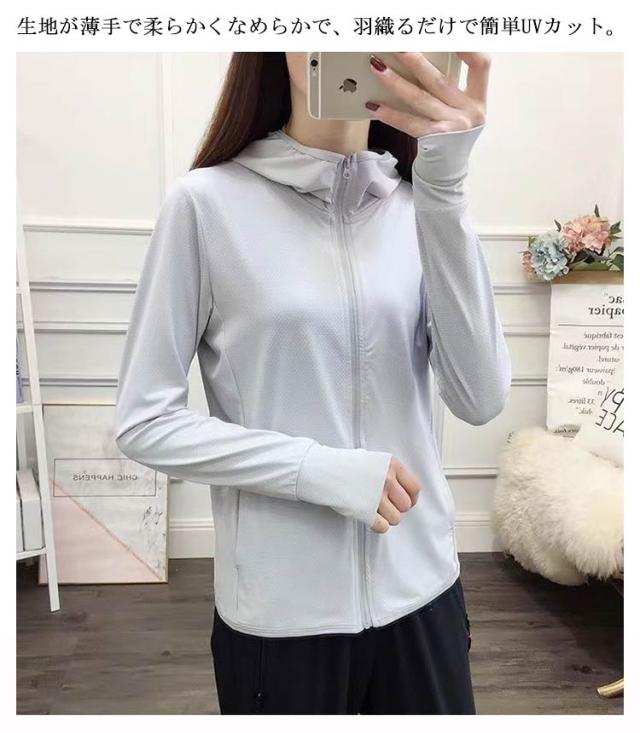 UPF40+ uvパーカー カット 紫外線 パーカー ZIPパーカー 紫外線対策 日除け 涼しい UVカットパーカー UV 春夏 L 指穴 レディース ZIPパーカー 羽織り おしゃれ コンパクト 軽い 薄手 持ち運び シンプル 無地 着回し M 長袖