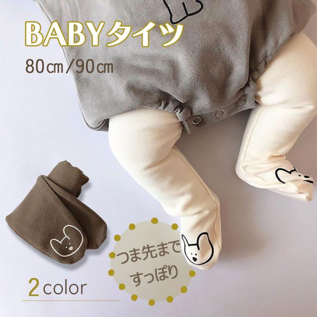 【可愛いベビータイツ】ベビー ベビータイツ 白 ブラウン くまさんタイツ 赤ちゃん 靴下 レギンス 男の子 女の子 シンプル 春 80 90