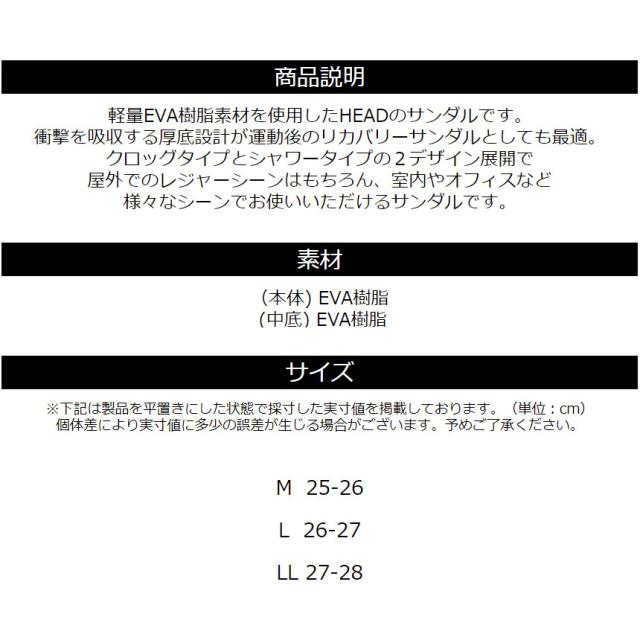スポーツ後のリカバリーサンダルとしても使えるHEADの厚底EVAサンダル 25cm 26cm 27cm 28cm